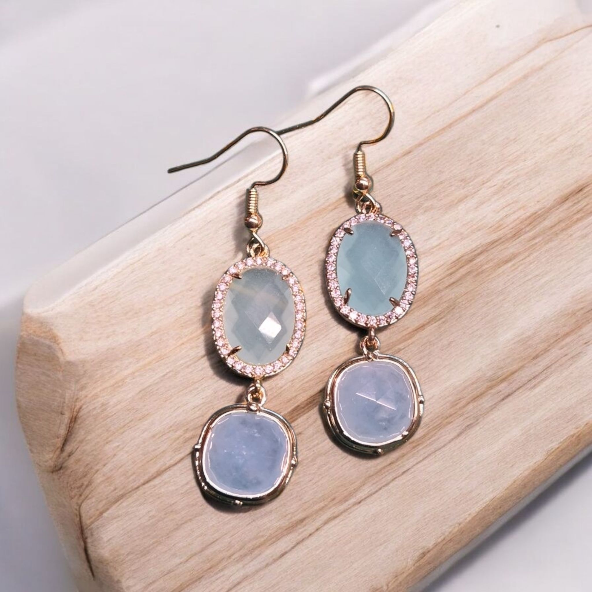 Zirkonia met edelsteen aan 18k vergulde oorhaakjes