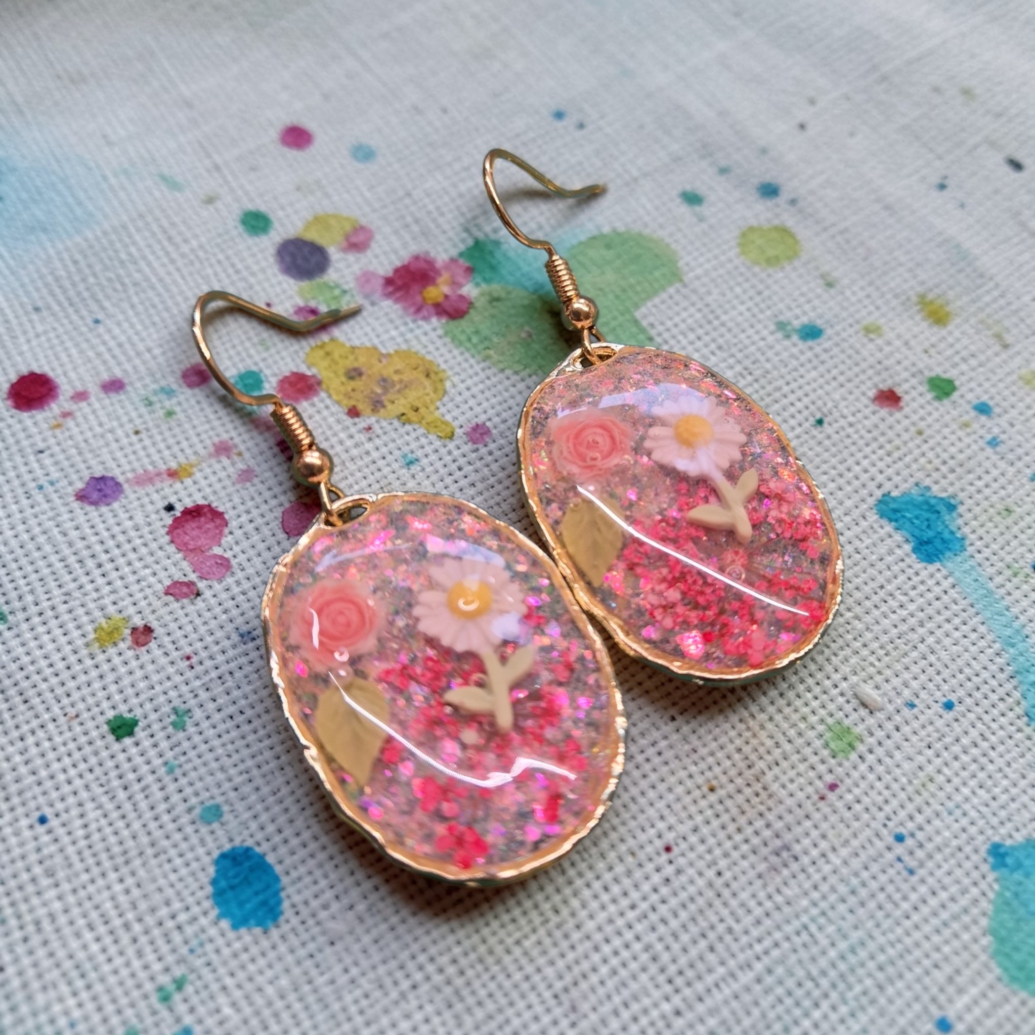 Goudkleurige hangertjes met bloemetjes aan 18k vergulde oorhaakjes