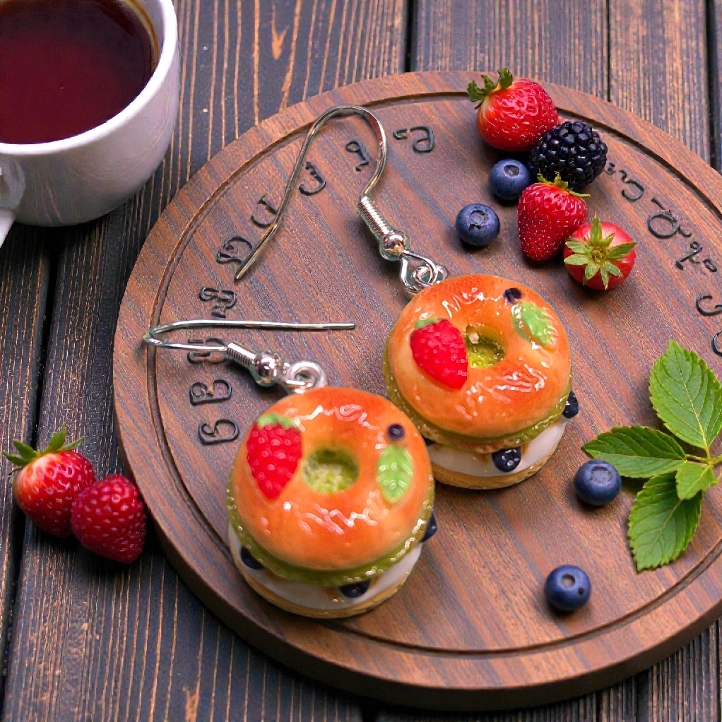 Grappige miniatuur bagels aan sterling zilveren oorhaakjes