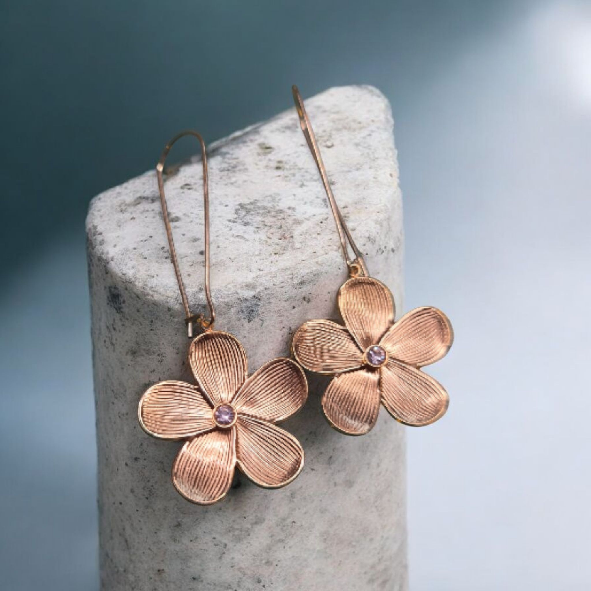 Mooie grote goudkleurige bloemen aan rvs haakjes