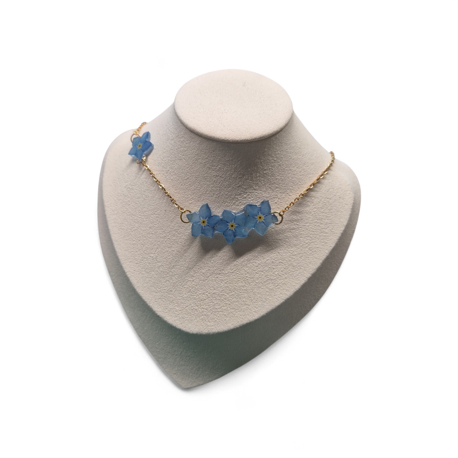 Goudkleurige ketting met Vergeet-mij-nietjes
