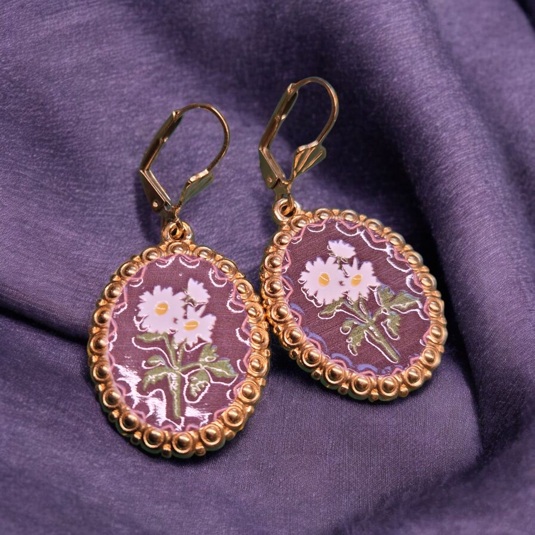 Mooie ovale beschilderde hangertjes aan rvs oorhaakjes