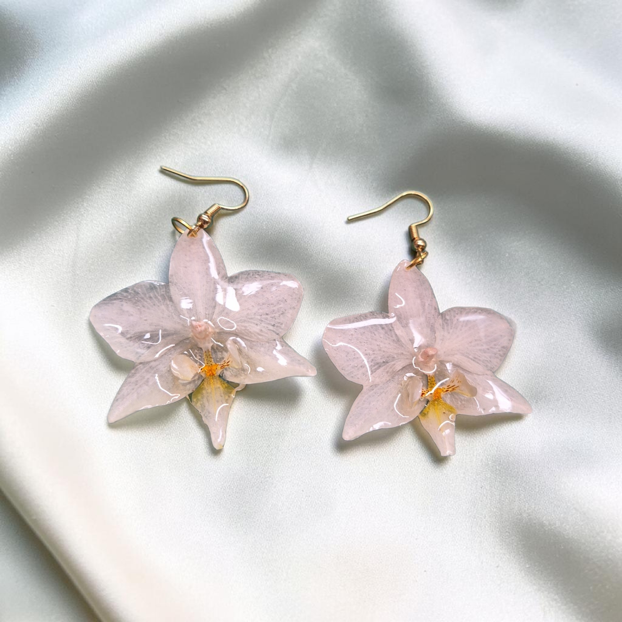 Mooie witte orchideetjes aan 18k vergulde oorhaakjes