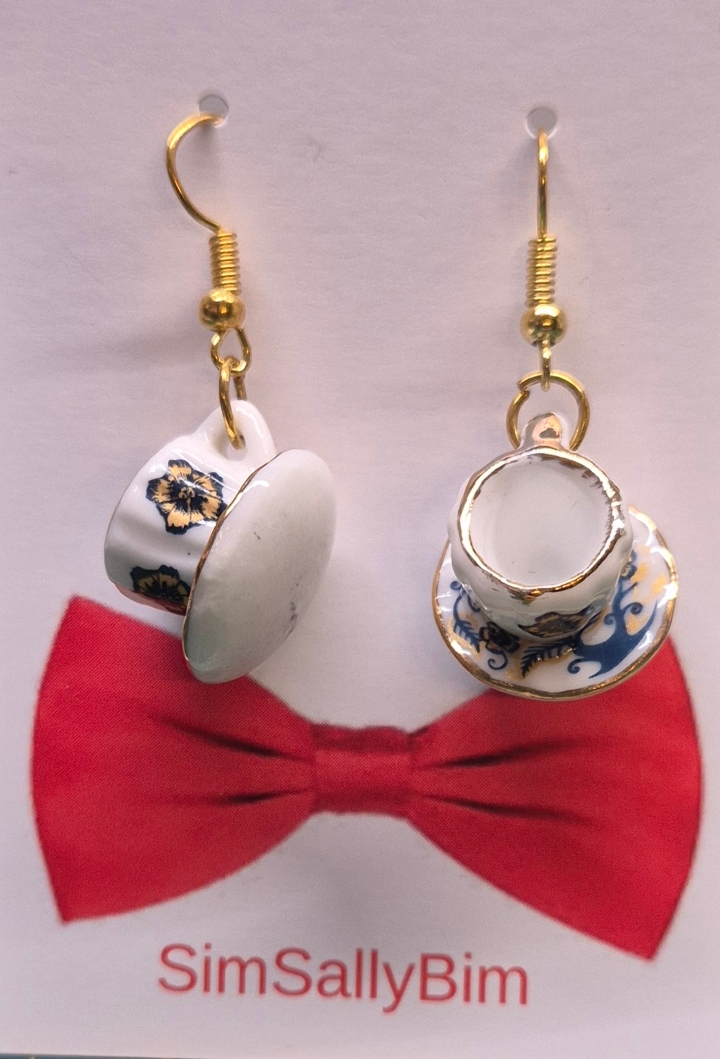 Porseleinen theekopjes aan 18k vergulde oorhaakjes
