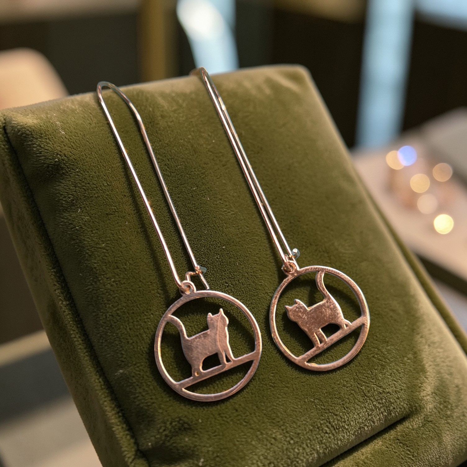 Schattige goudkleurige hangertjes met kat aan lange rvs haakjes