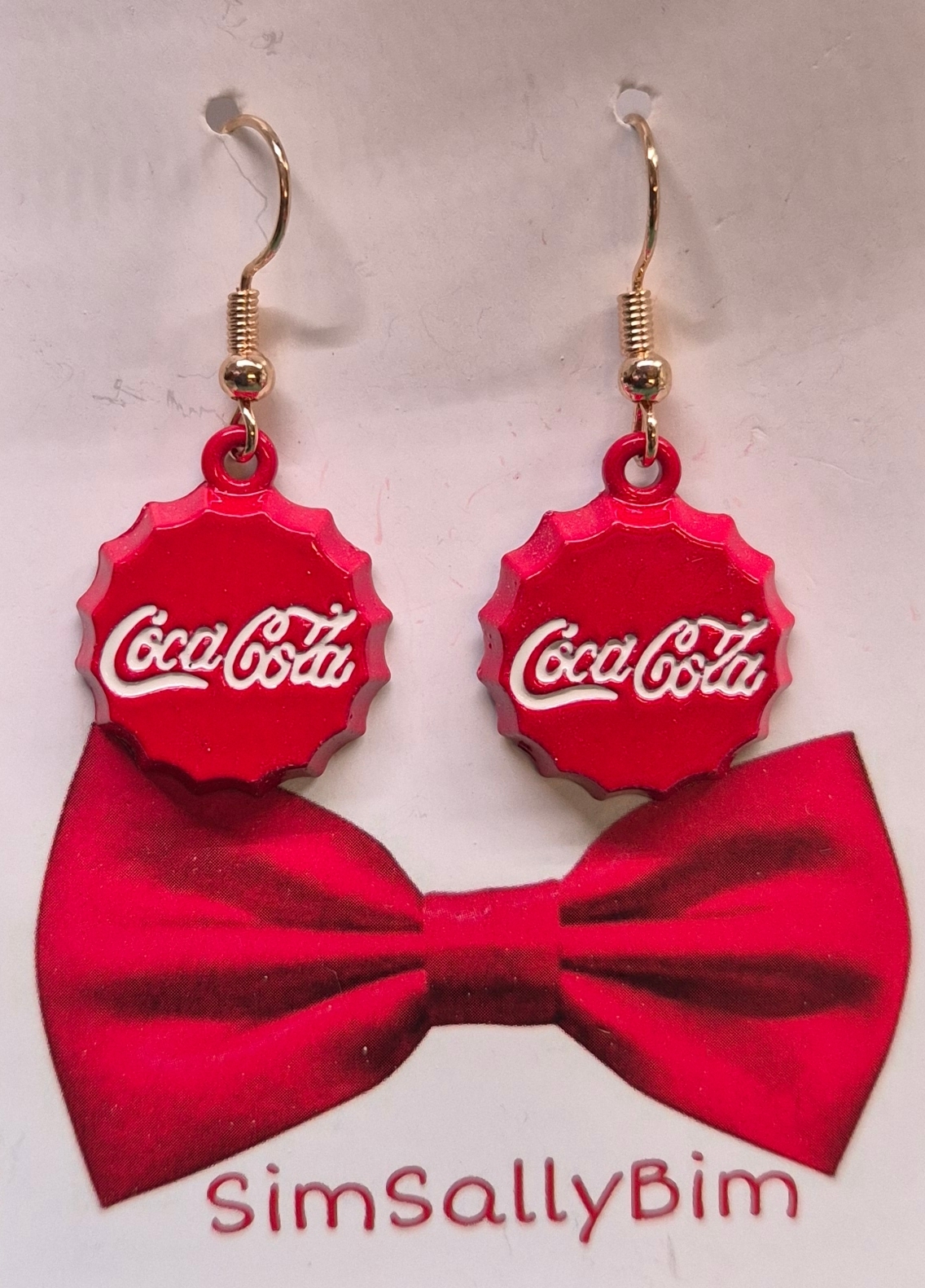 Grappige coca cola dopjes aan 18k vergulde oorhaakjes