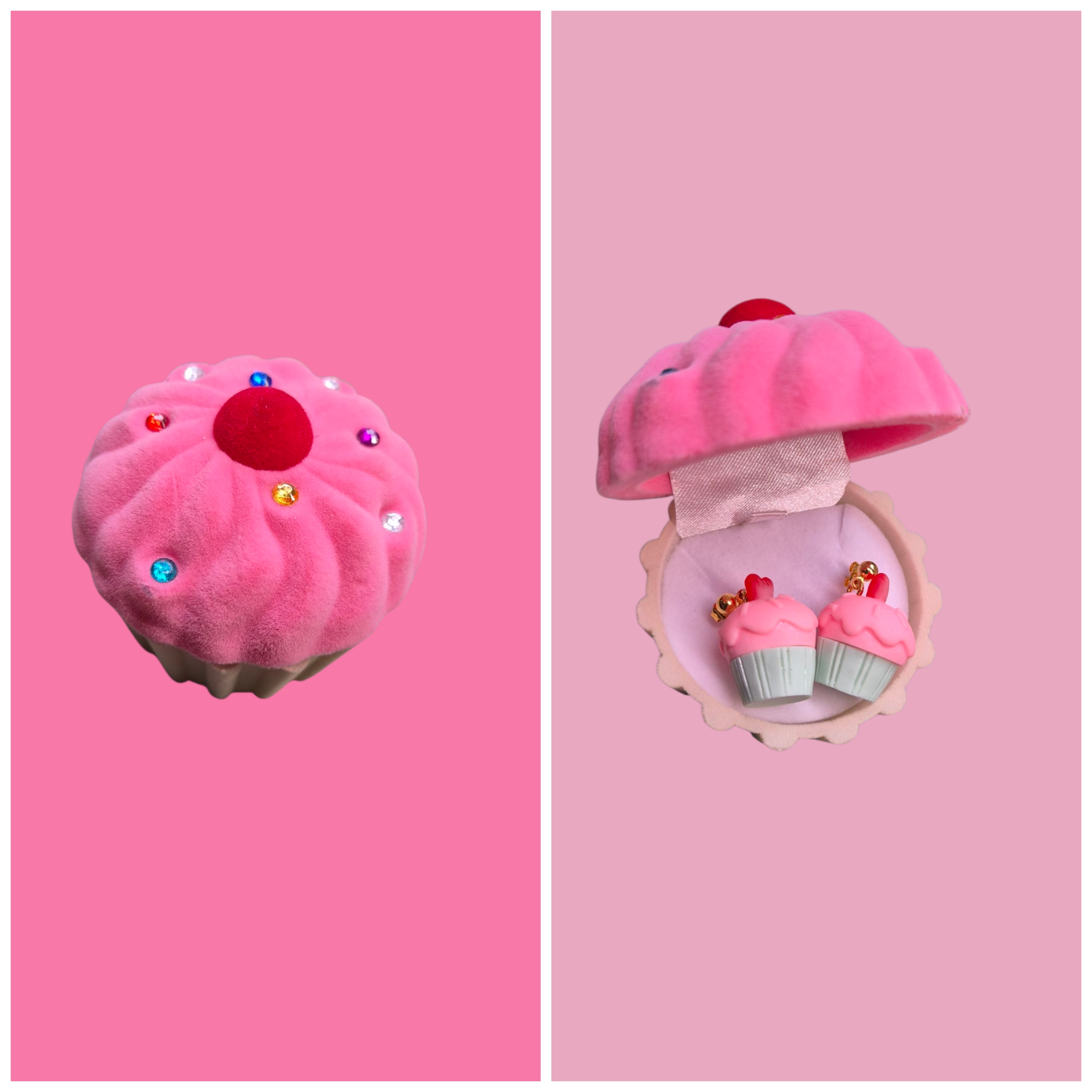 Mooi juwelendoosje met roze cupcake oorbelletjes