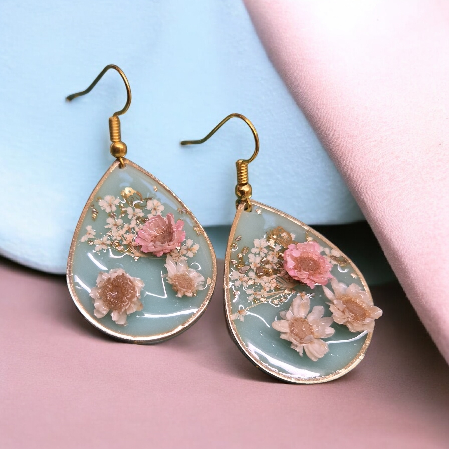 Mooie resin hangers aan 18k vergulde oorhaakjes