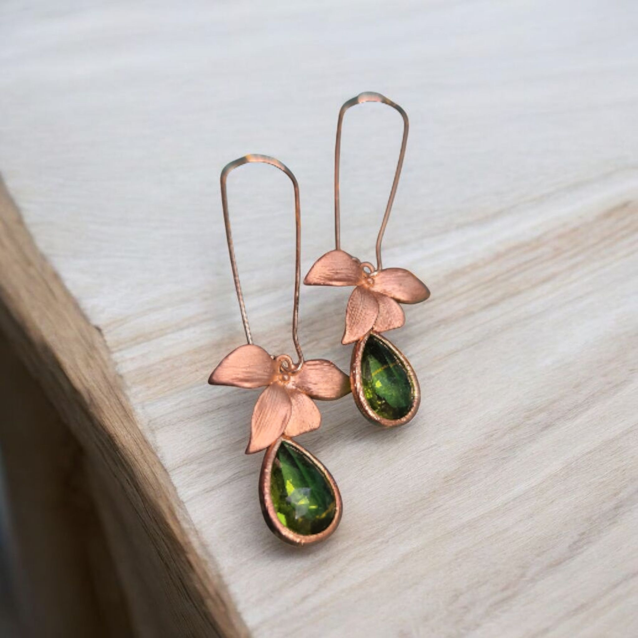 Mooie goudkleurige orchideetjes met druppel aan rvs haakjes