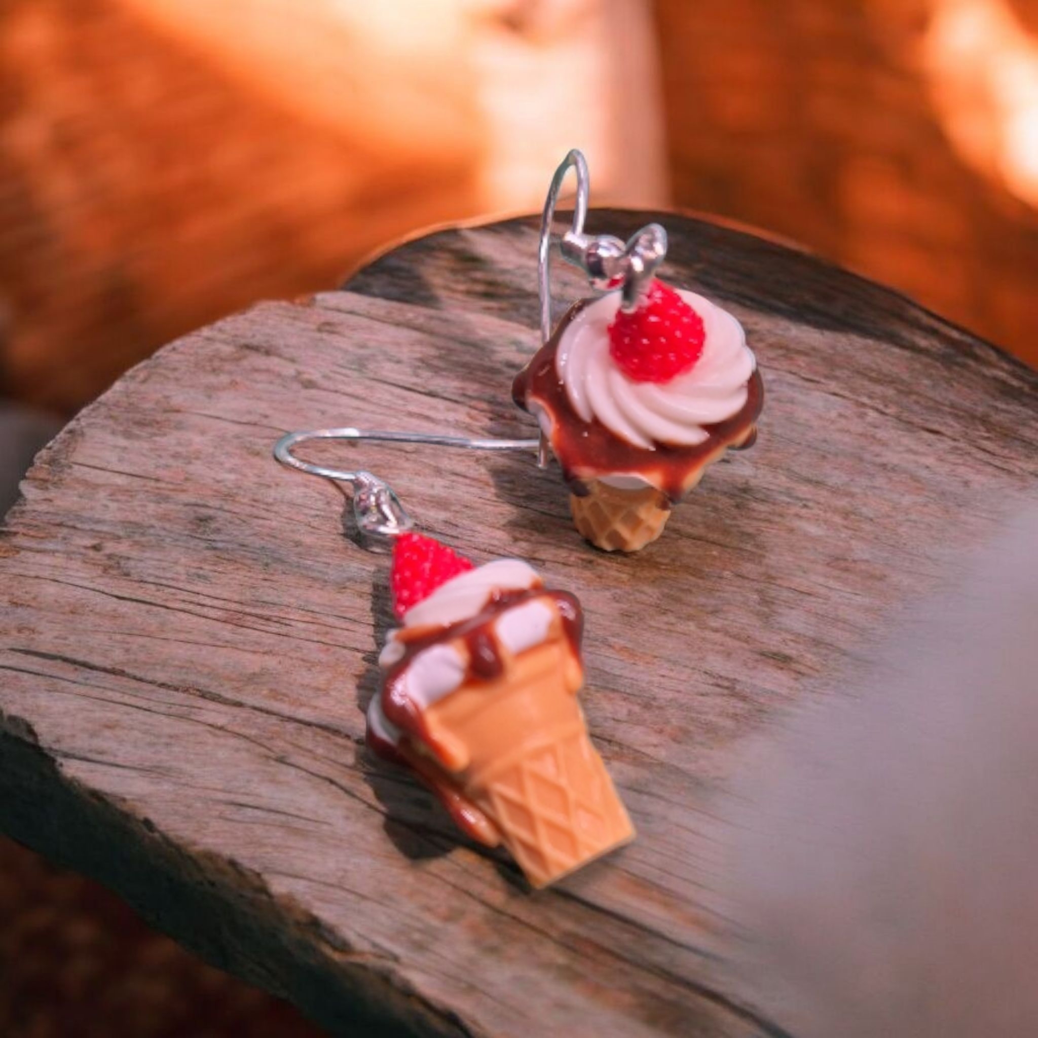 Grappige miniatuur ijsjes aan sterling zilveren oorhaakjes