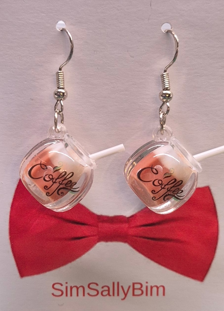 Schattige miniatuur tasjes met koffie aan sterling zilveren oorhaakjes
