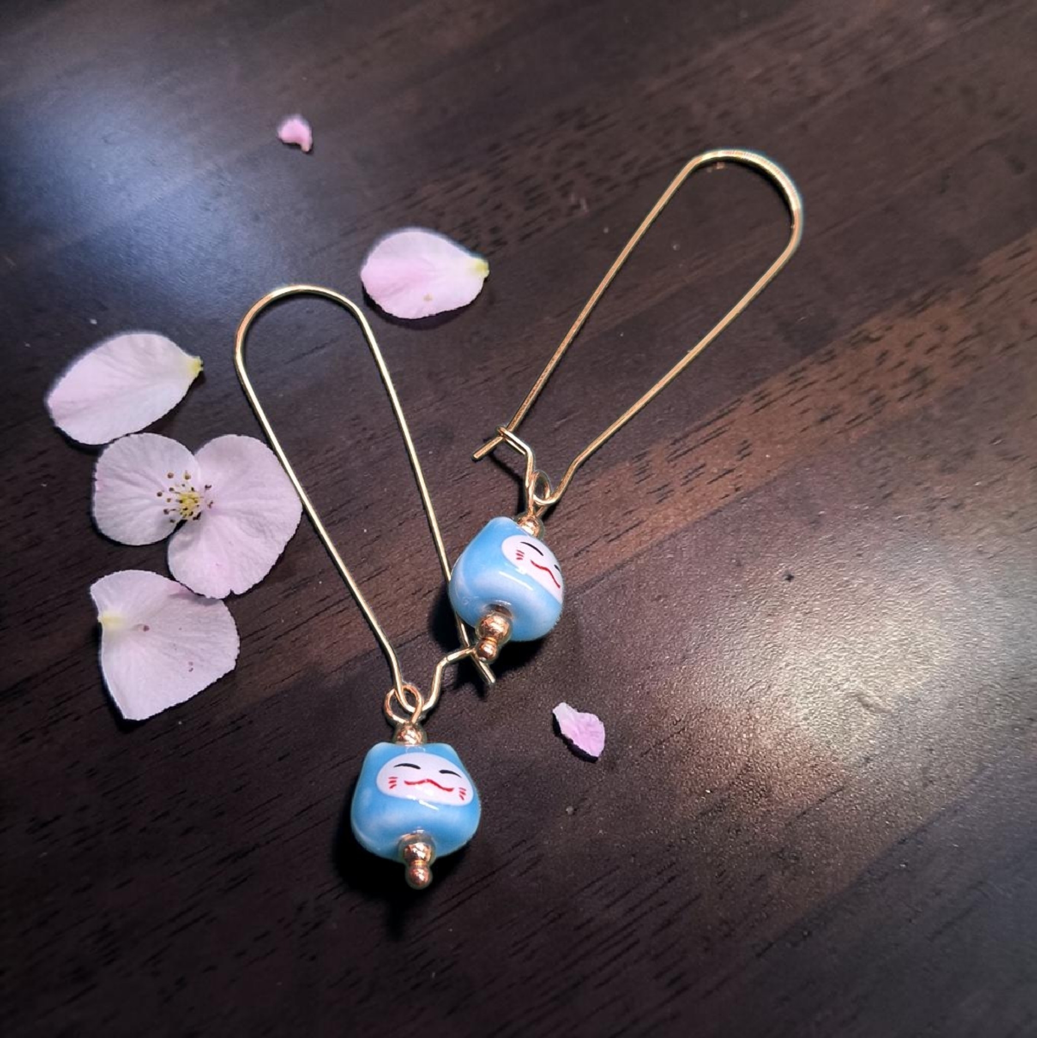 Mooie porseleinen gelukskatjes aan lange rvs haakjes
