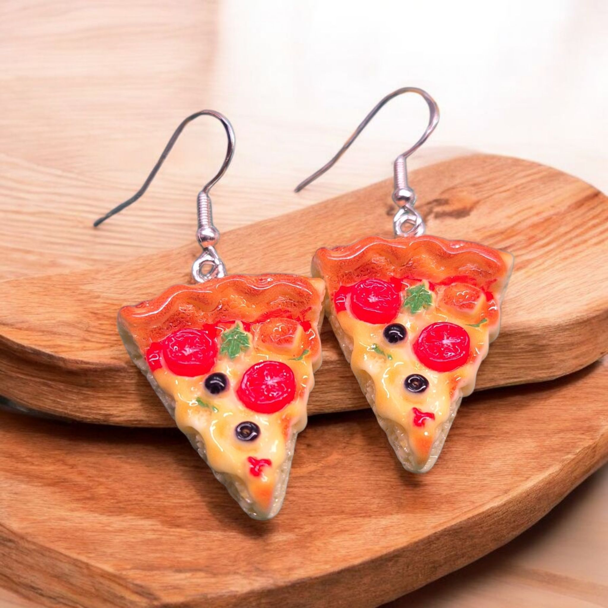 Stukje pizza aan sterling zilveren oorhaakjes