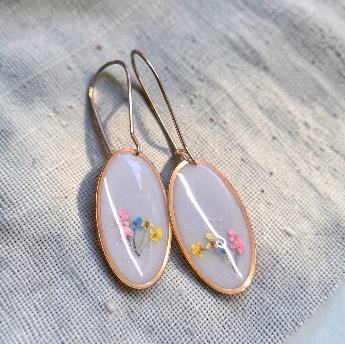 Mooie goudkleurige ovale hangers met gedroogde bloemetjes