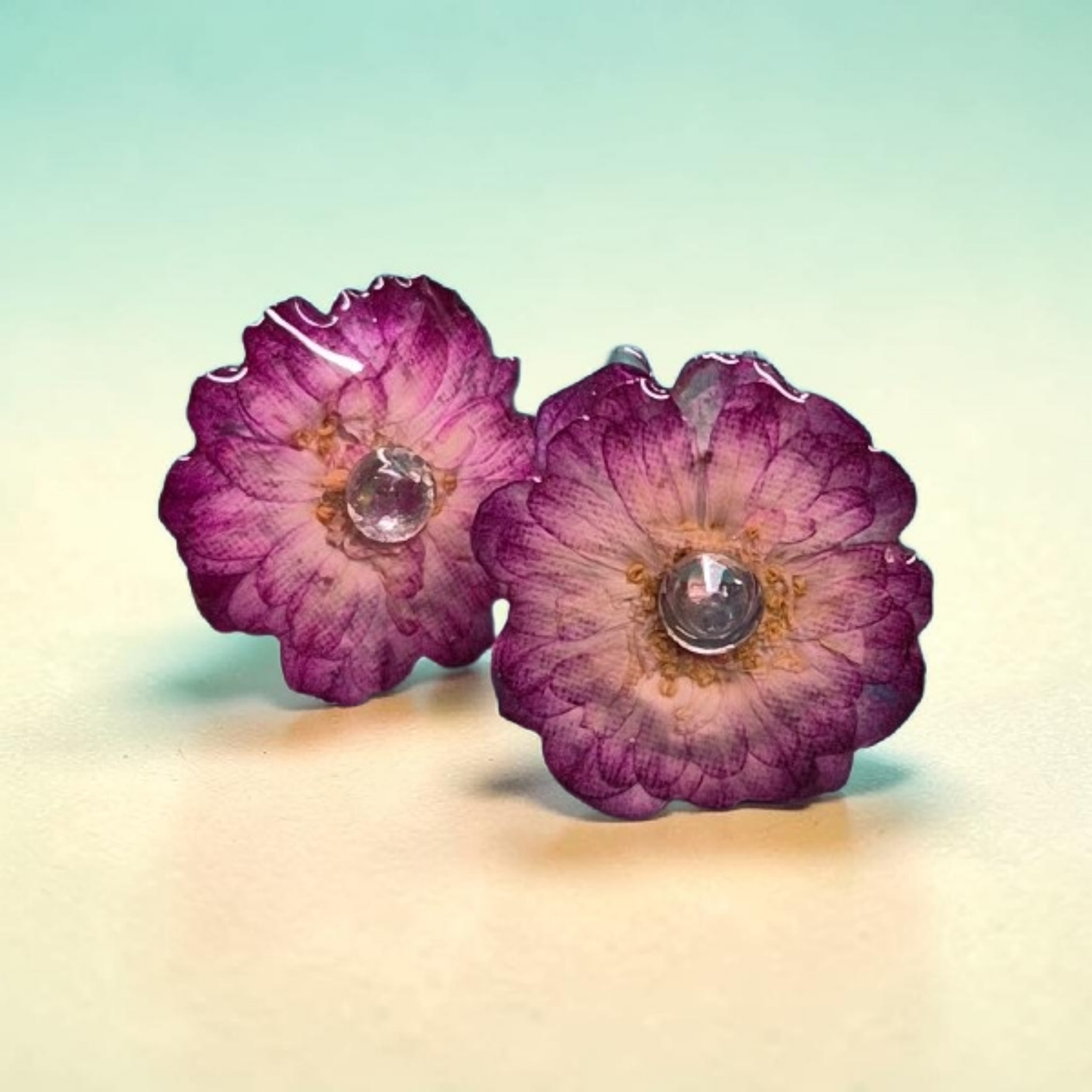 Mooie gedroogde bloemetjes bewerkt met epoxy