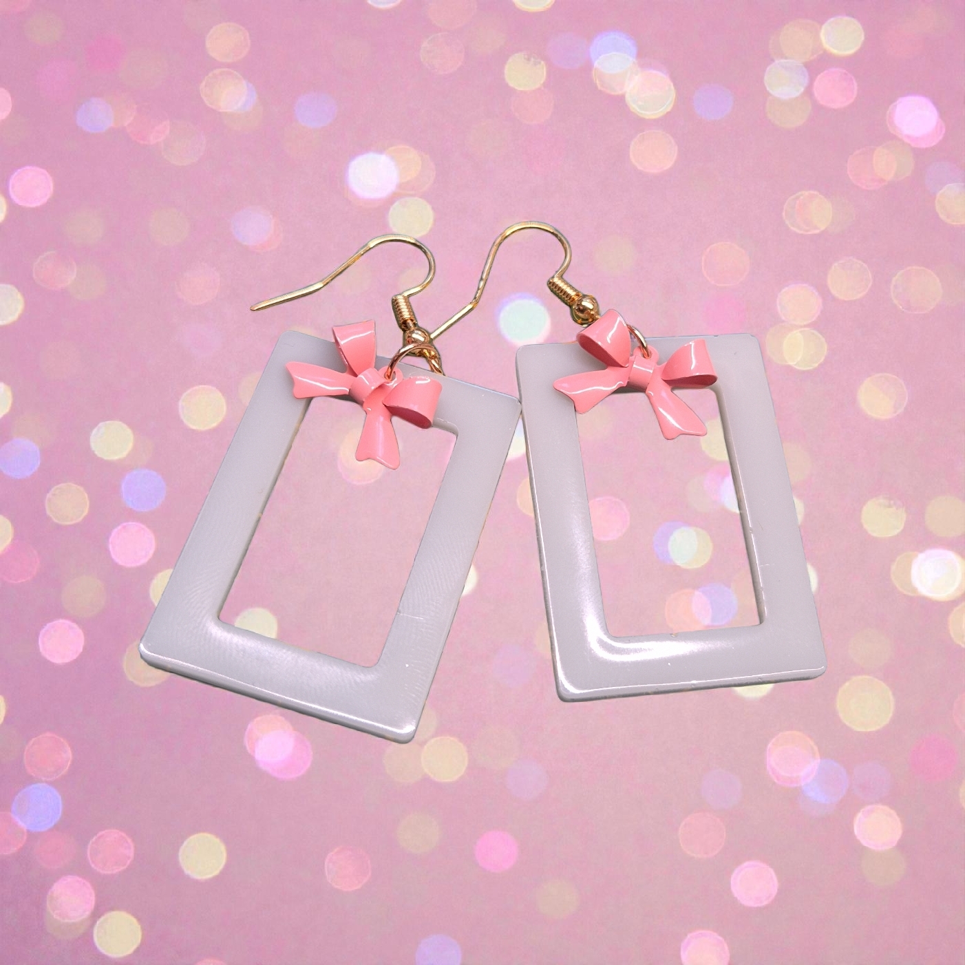 Rechthoekige epoxy hangertjes met strikjes aan 18k vergulde oorhaakjes