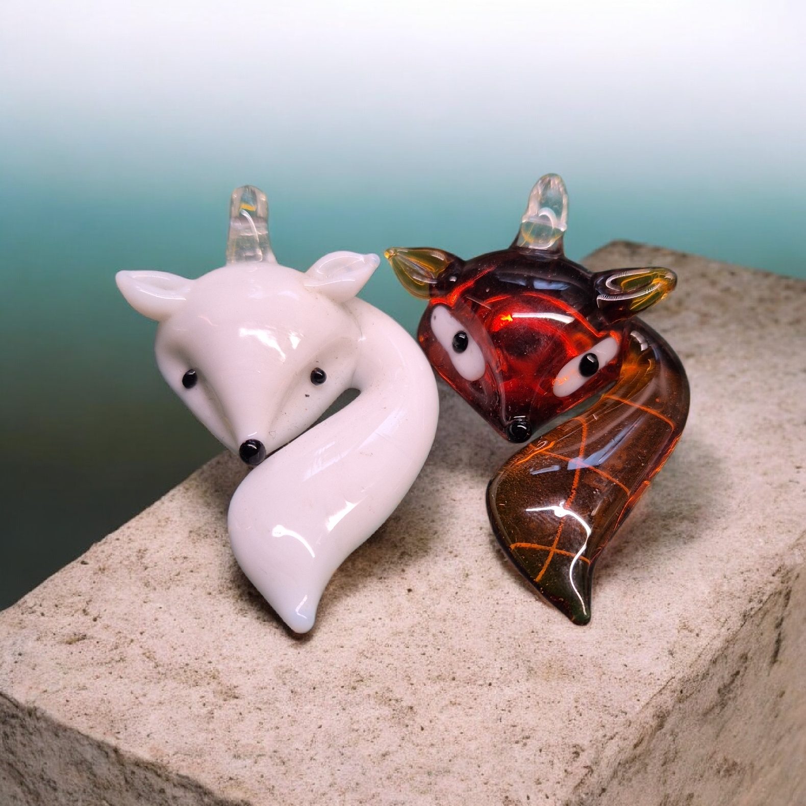 Glazen vosjes aan touw