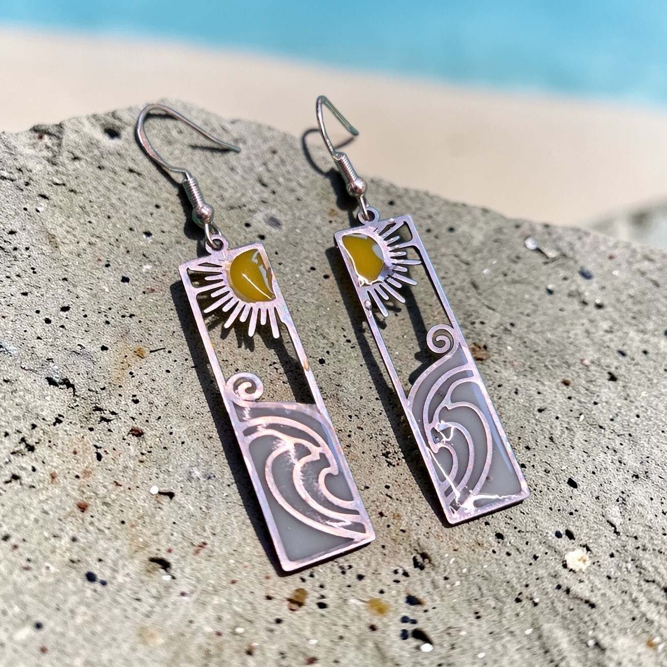 Mooie roestvrijstalen hangertjes met epoxy aan sterling zilveren oorhaakjes