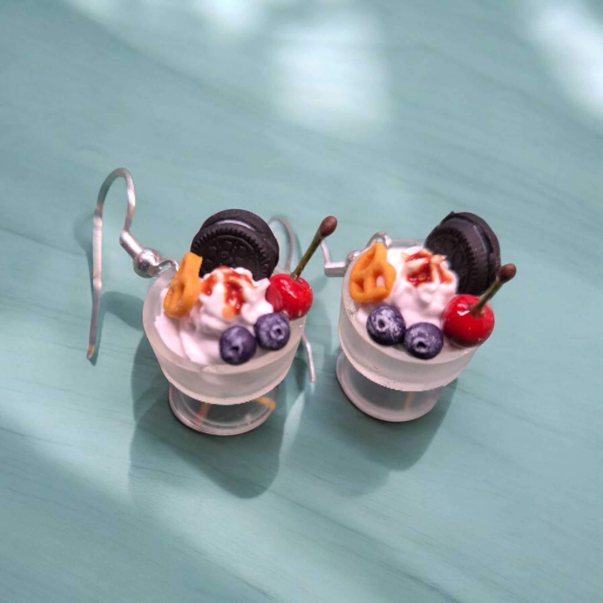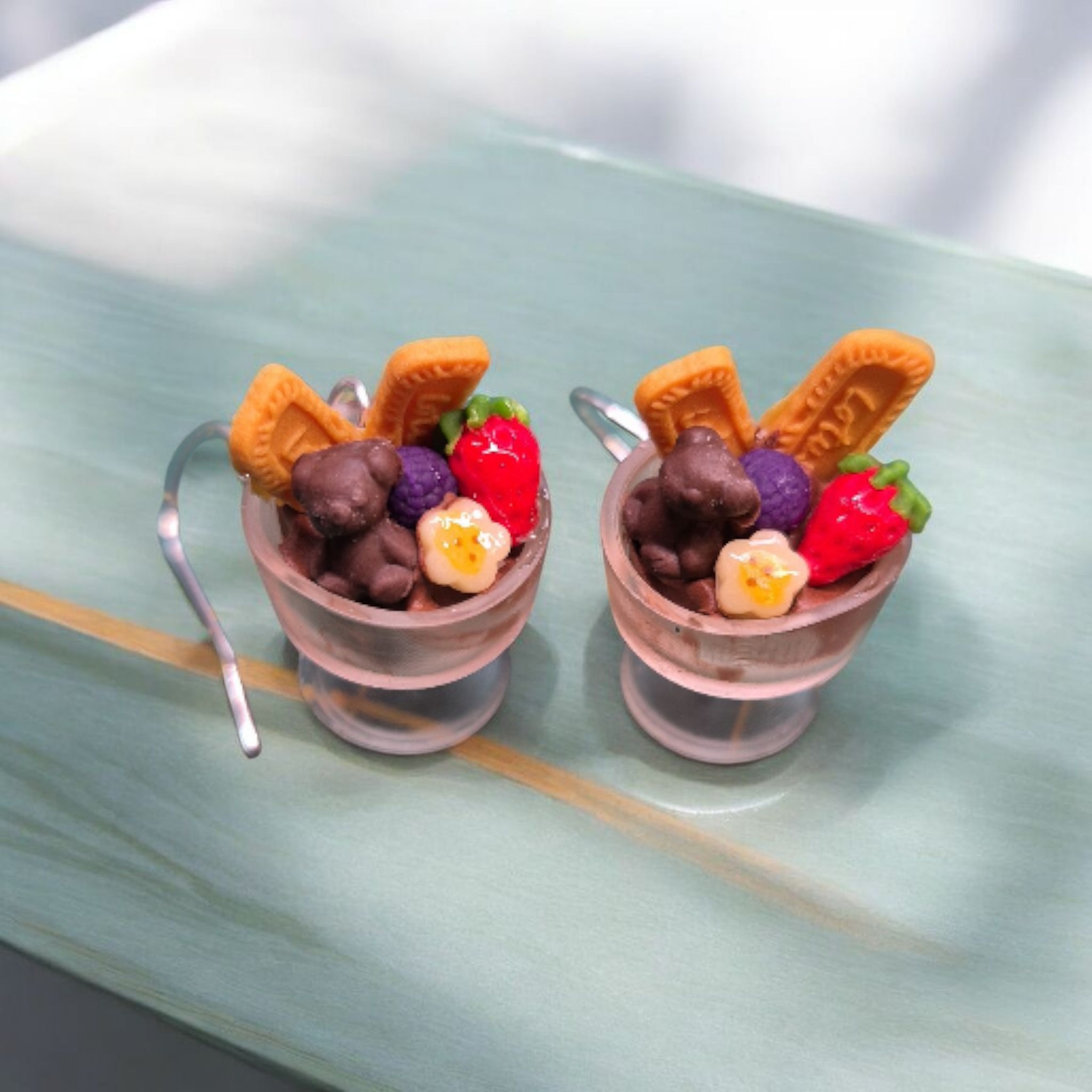 Schattige miniatuur potjes ijs aan sterling zilveren oorhaakjes
