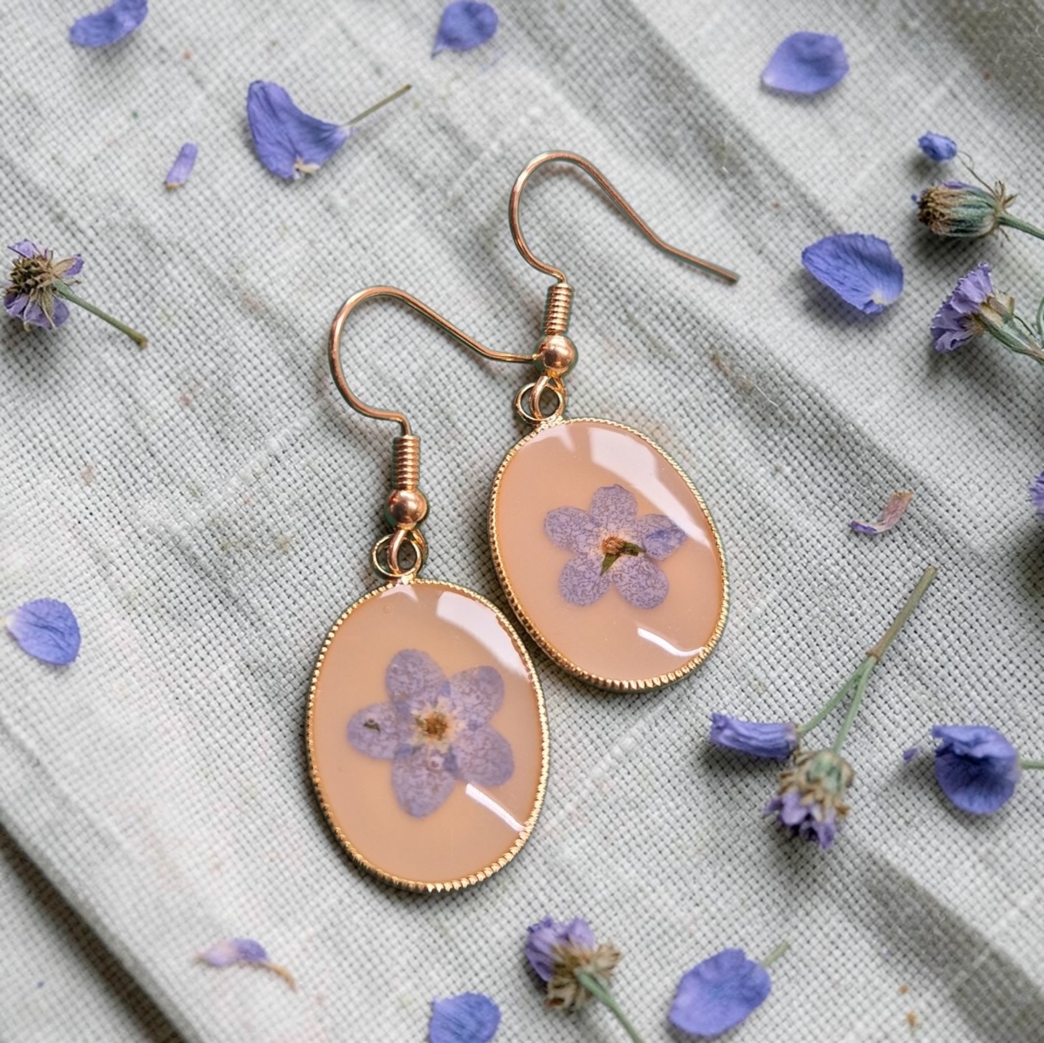 Mooie goudkleurige hangertjes met bloemetjes Vergeet-mij-nietjes 18k vergulde oorhaakjes