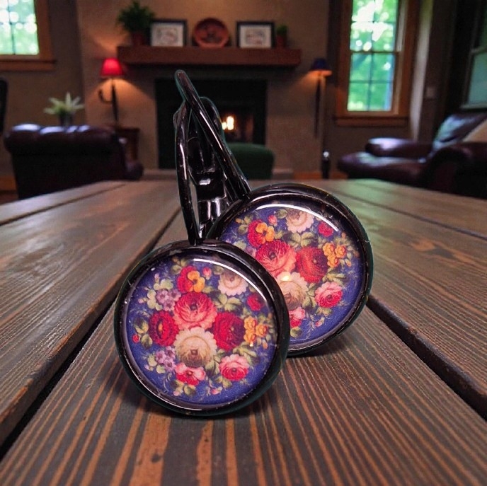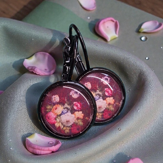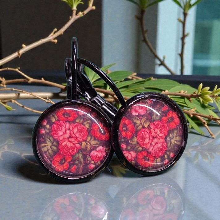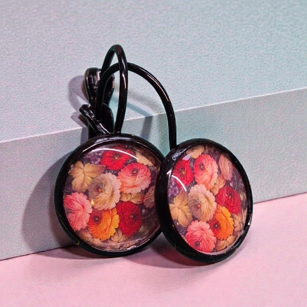 Zwarte vaste haakjes met vintage bloemenprint
