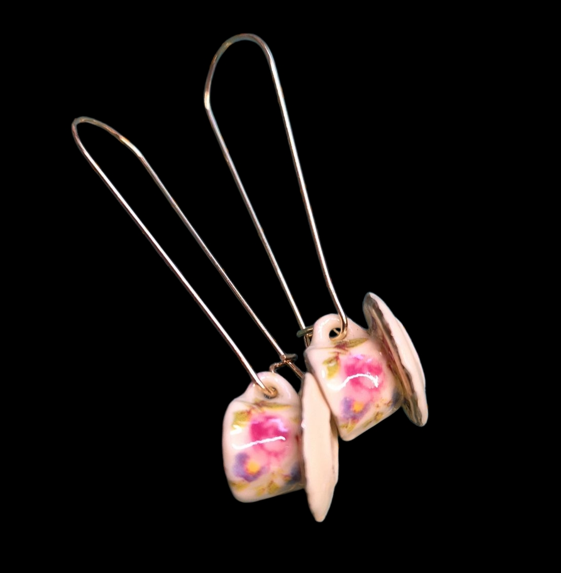 Mooie gele porseleinen theekopjes aan rvs haakjes