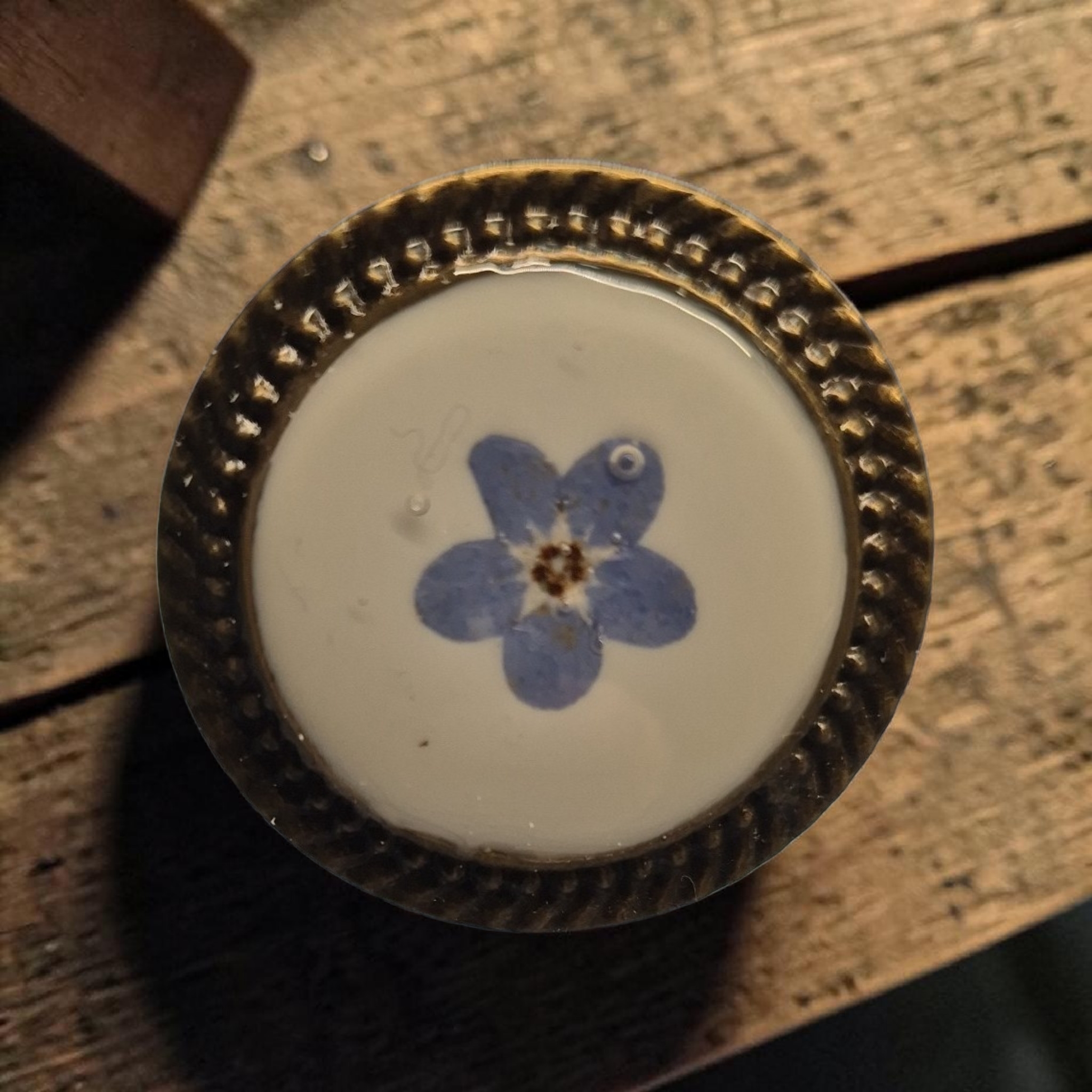 Bronskleurige ring met Vergeet-mij-nietje