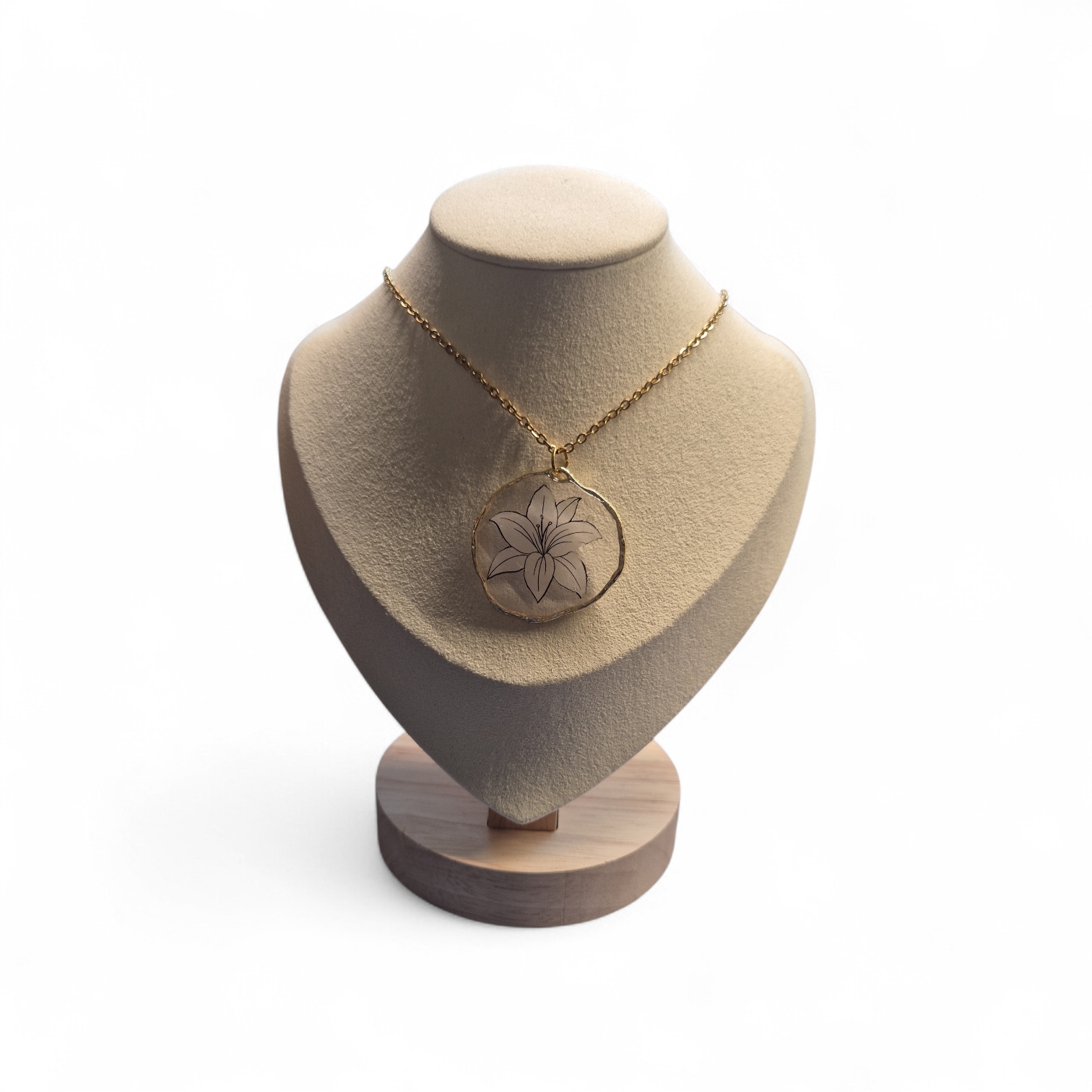 Mooie handgemaakte epoxy ketting met zwart/wit bloem