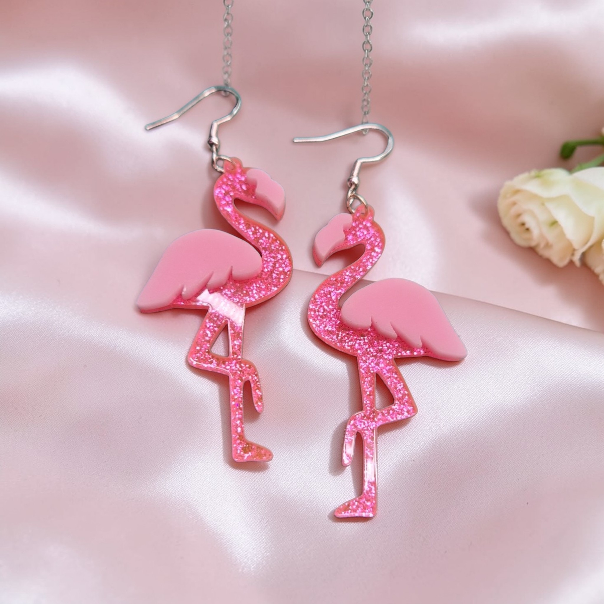 Mooie grote flamingo's aan sterling zilveren oorhaakjes