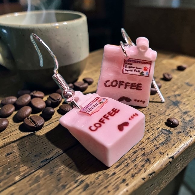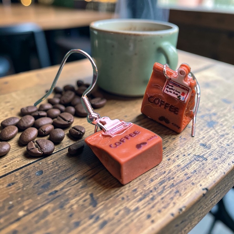 Schattige miniatuur zakjes koffiebonen aan sterling zilveren oorhaakjes