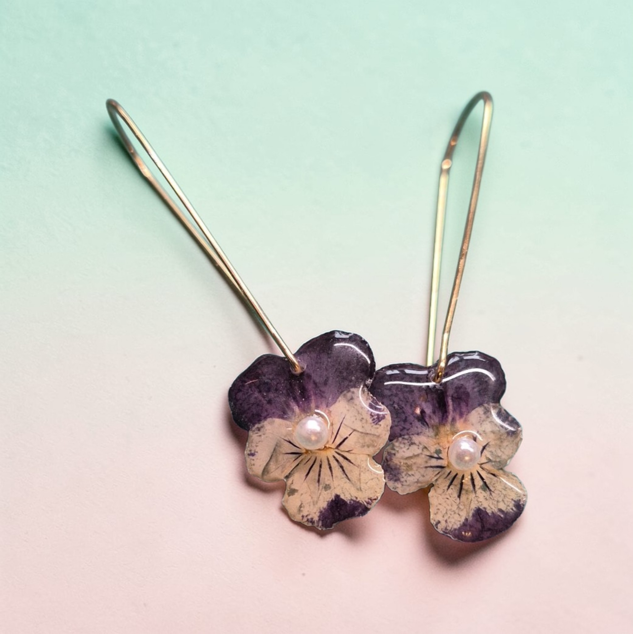 Mooie gedroogde echte viooltjes aan lange rvs haakjes