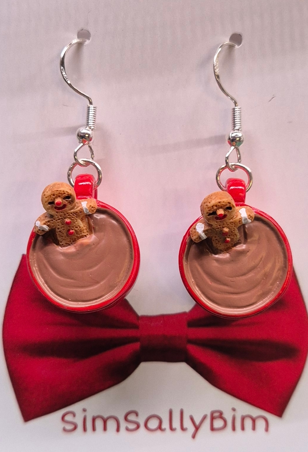 Grappige tas met chocolademelk en gembermannetje aan sterling zilveren oorhaakjes lengte: 40mm