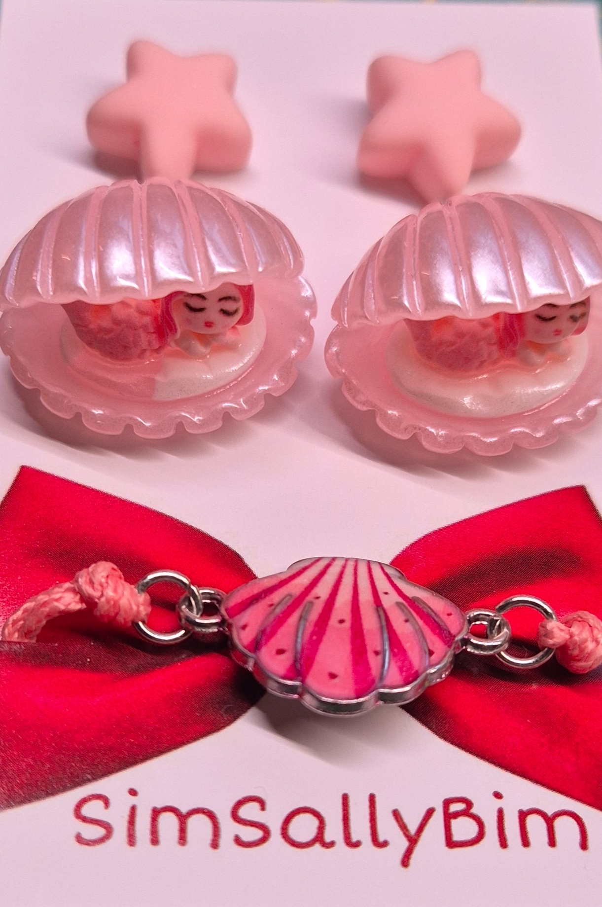 Leuke schelp oorbelletjes met bijpassend armbandje