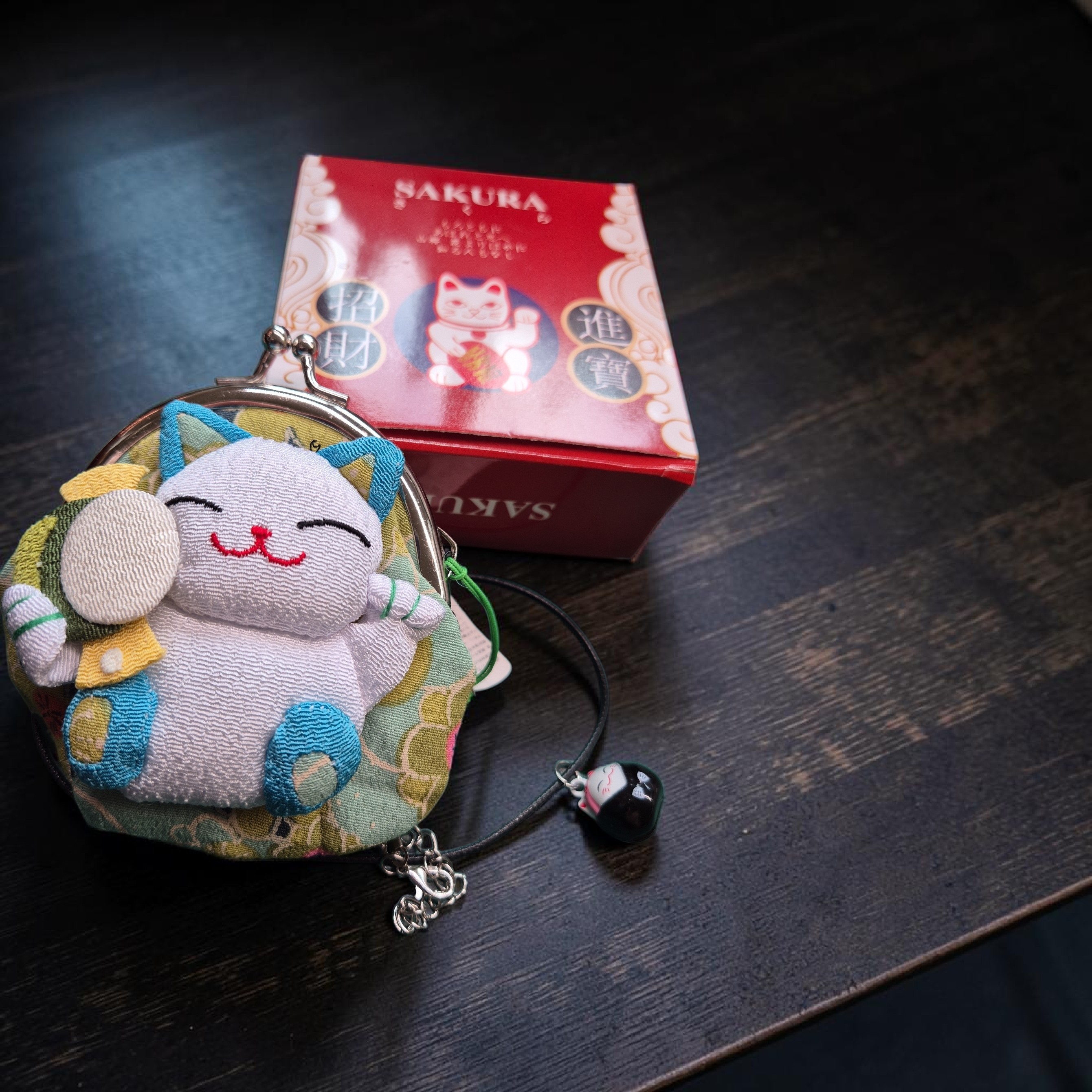 Mooie portemonnee met chinese kat en bijpassende belletjes ketting