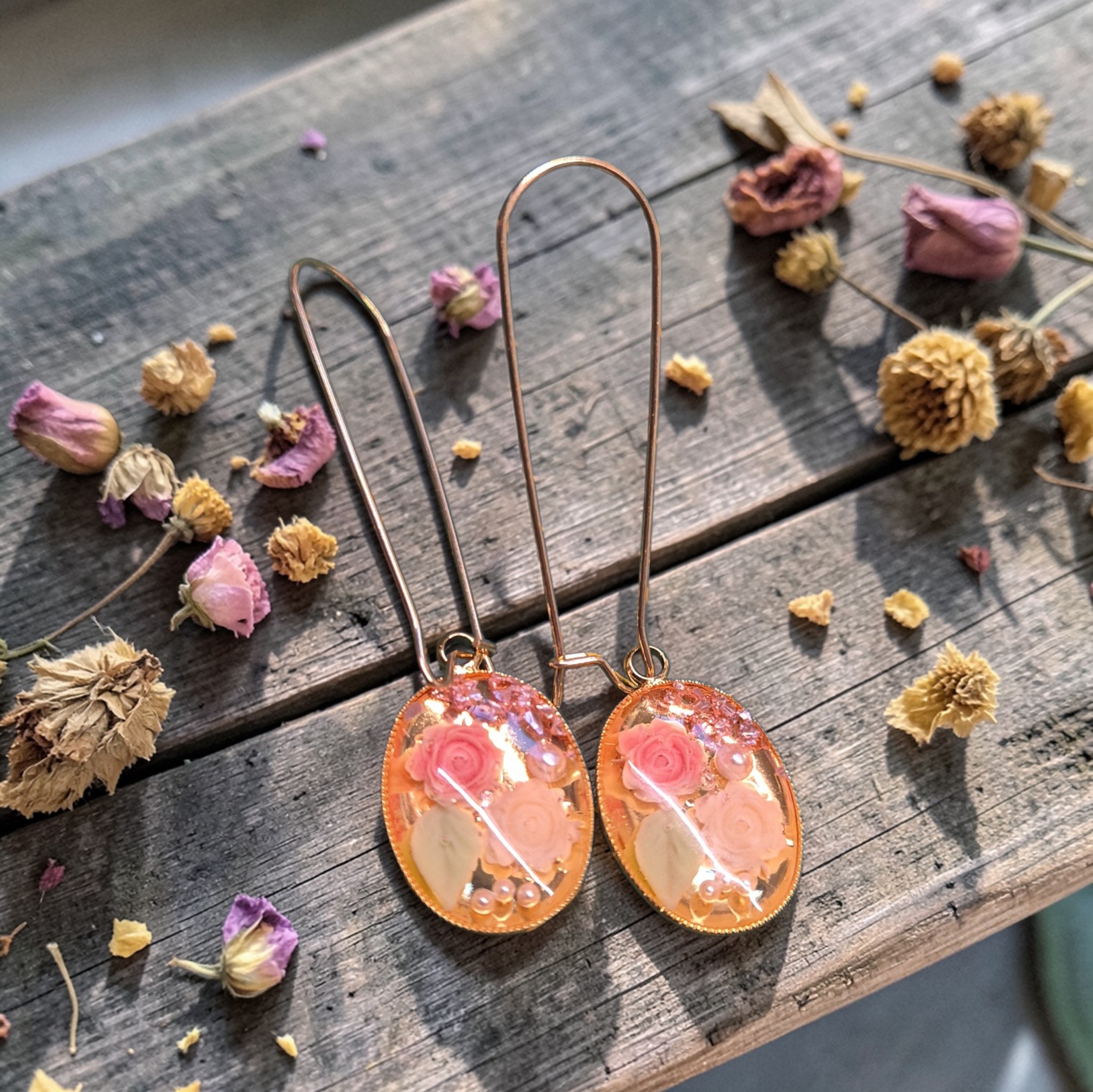 Goudkleurige settings met bloemetjes aan lange rvs haakjes