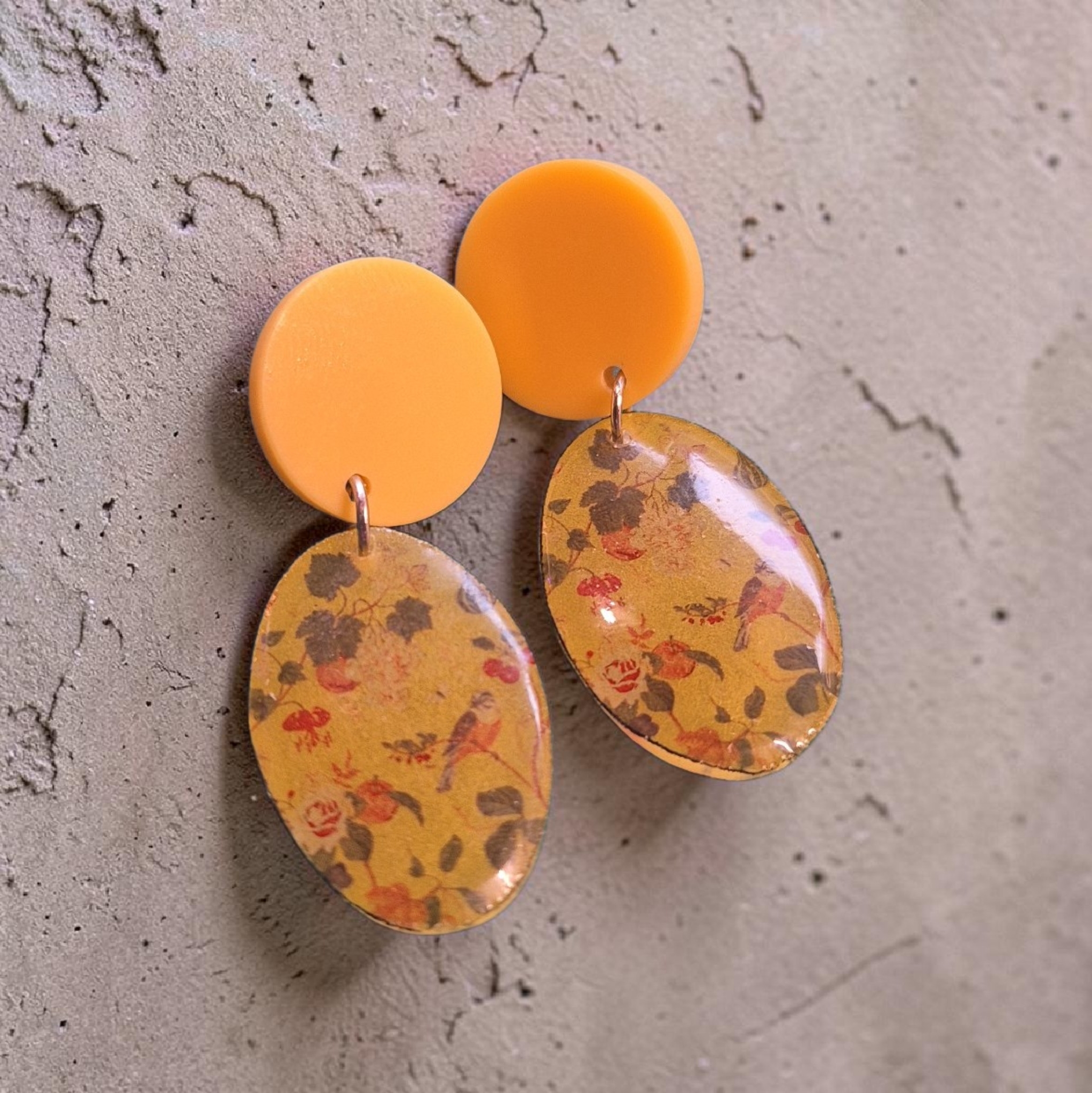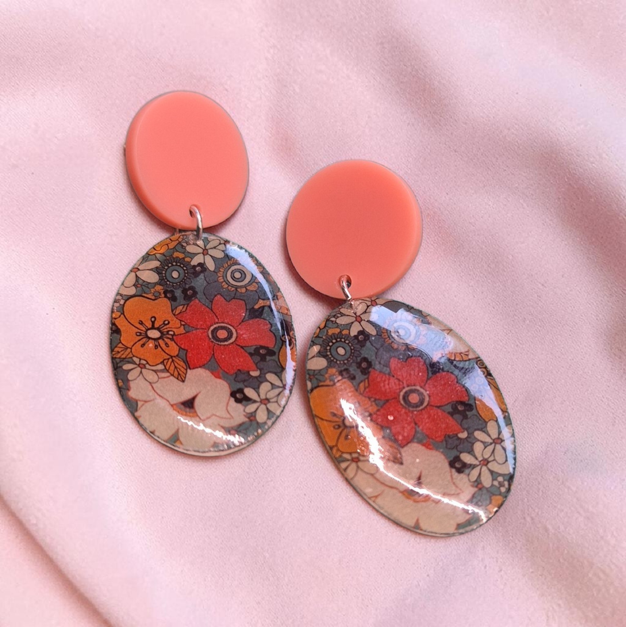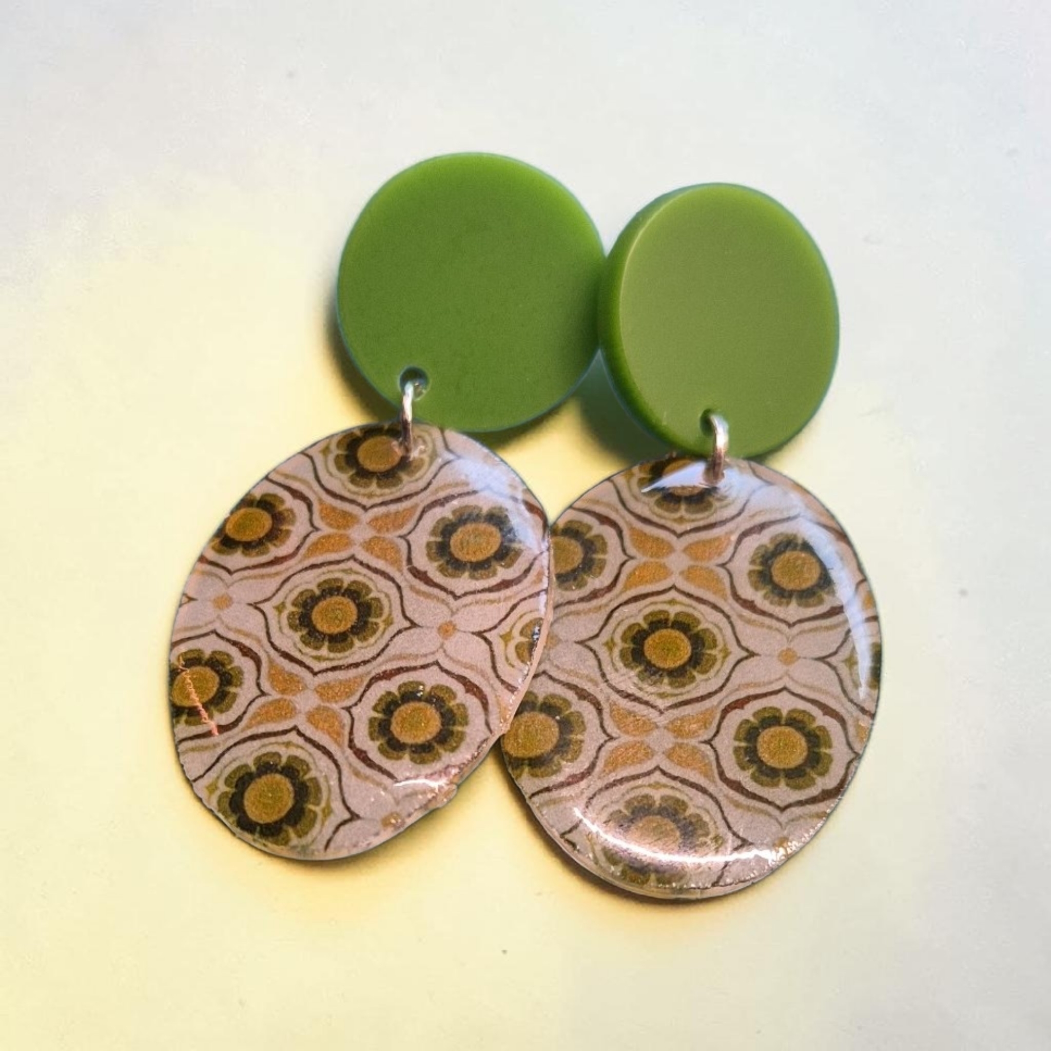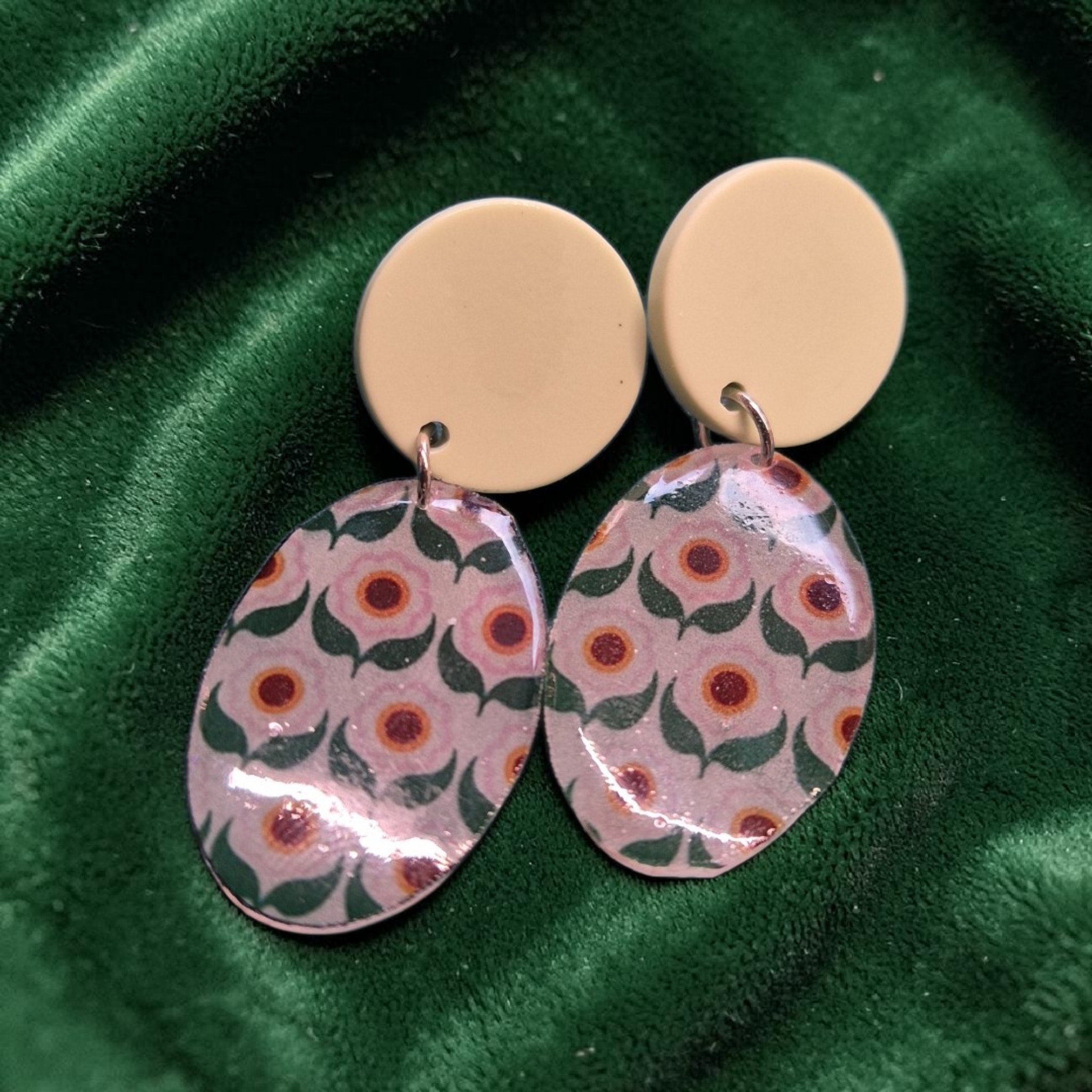 Mooie handgemaakte ovale hangertjes aan kleurrijke stekers