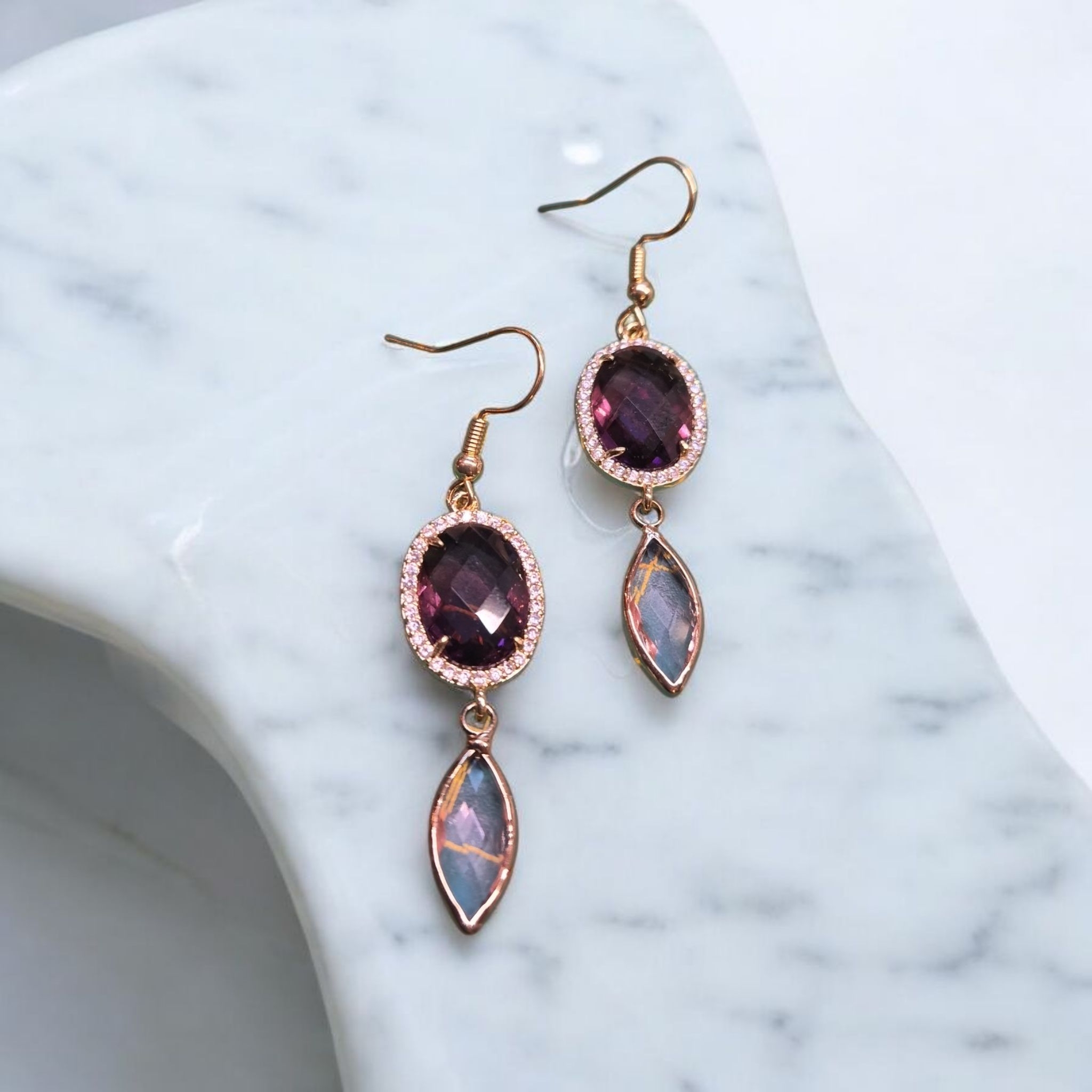 Zirkonia met facetsteentjes aan 18k vergulde oorhaakjes