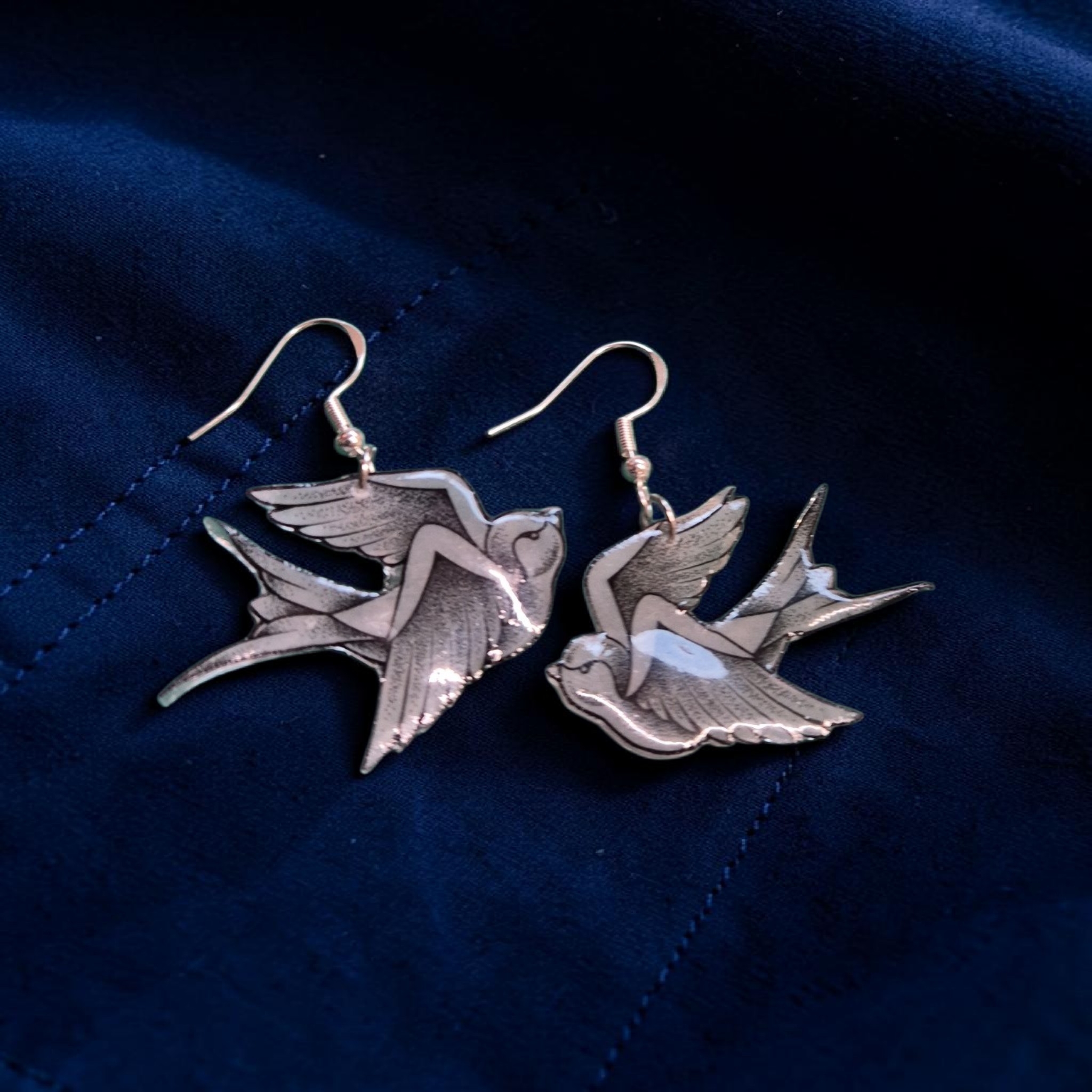 Mooie handgemaakte zwaluwen aan sterling zilveren oorhaakjes