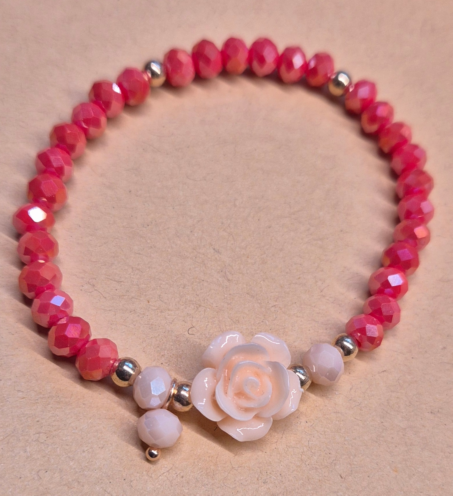Armbandjes met Oostenrijkse glaskralen en roosje...