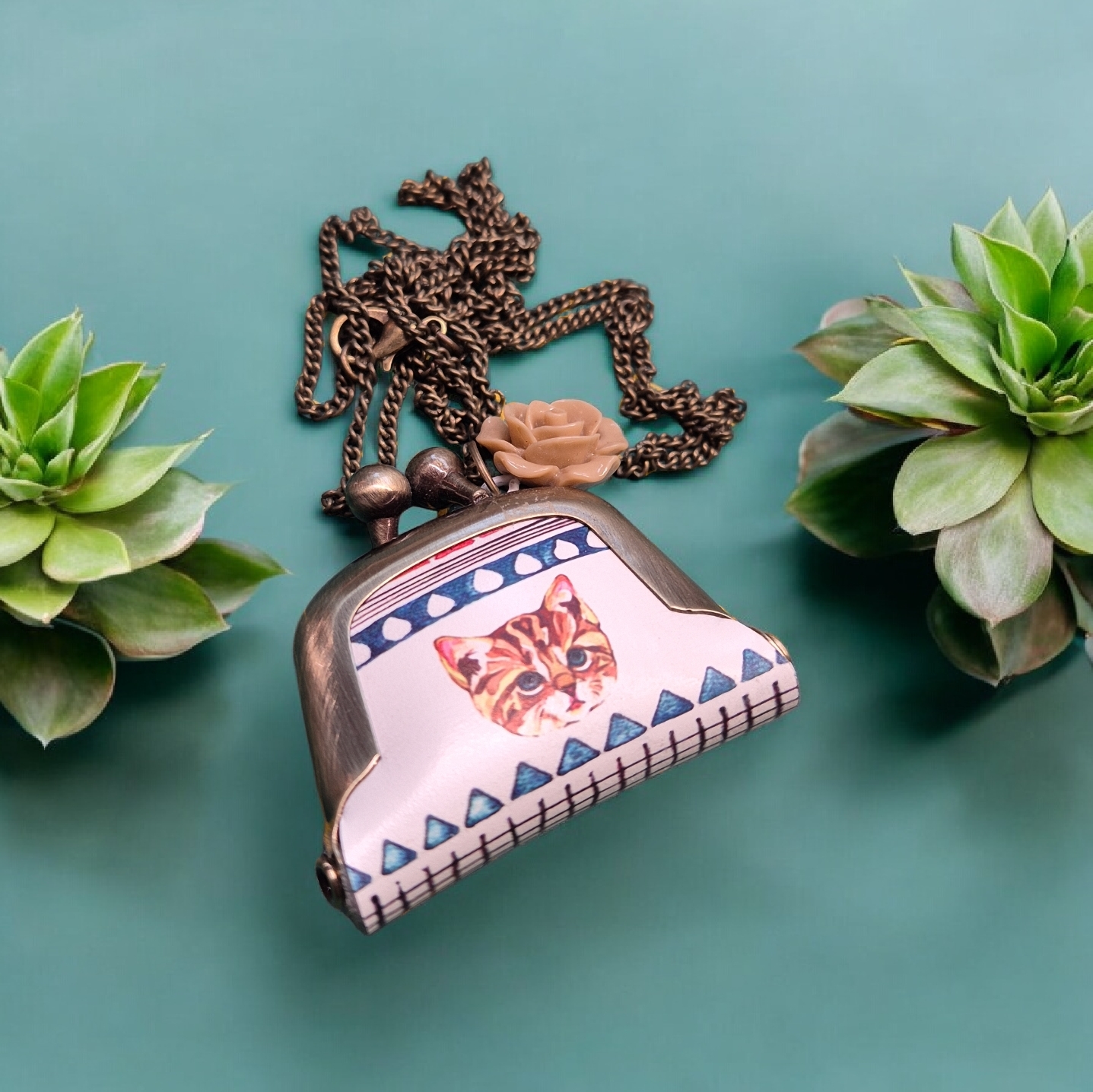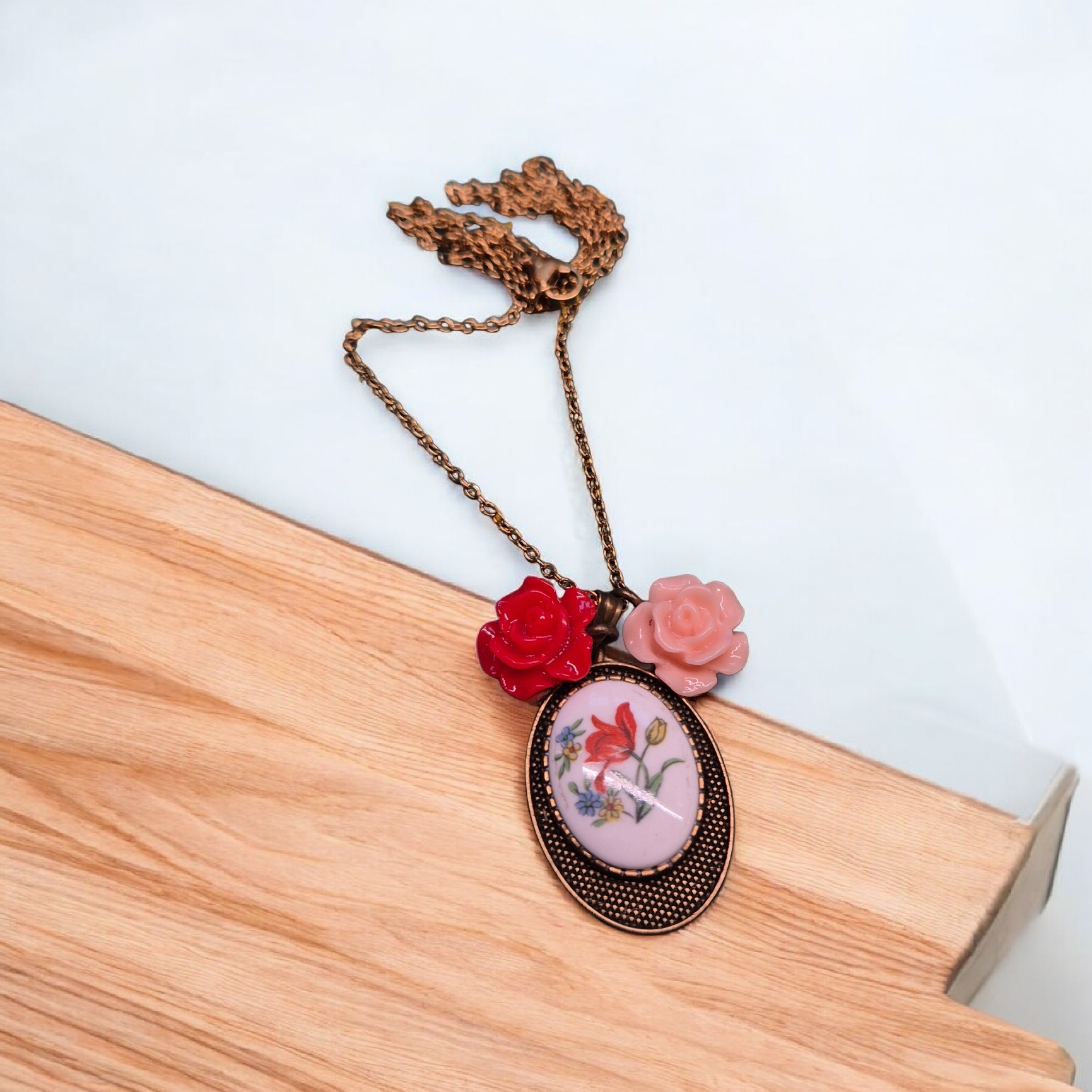 Bronskleurige hanger met vintage cabochon en roosjes...