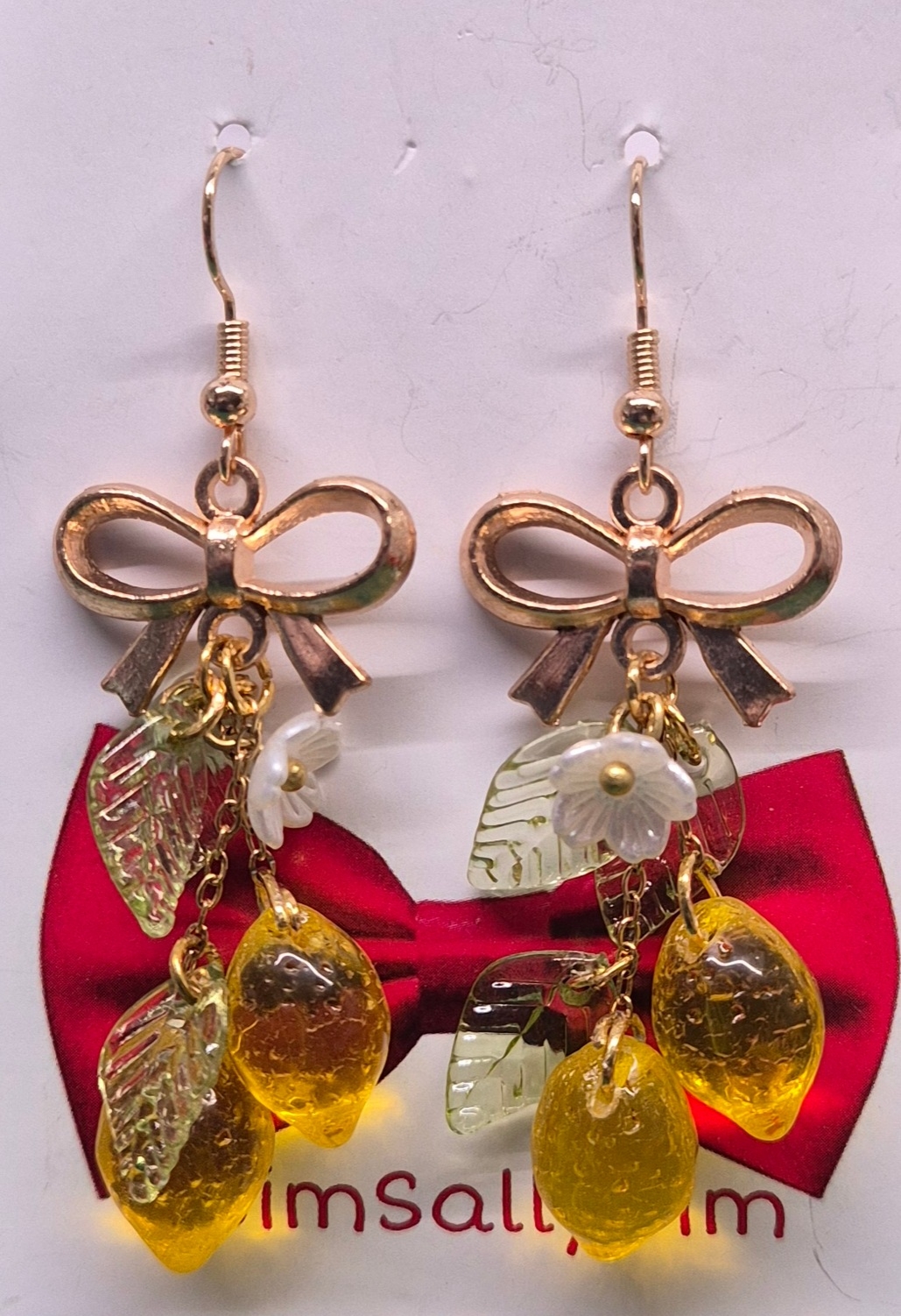 Schattige citroentjes met blaadjes en bloemetjes aan 18k vergulde oorhaakjes ...