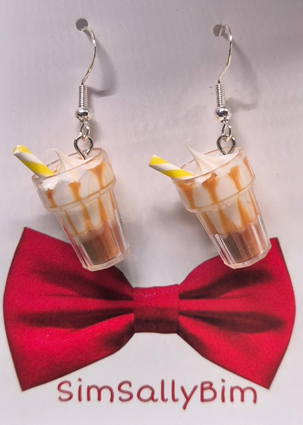 Handgemaakte bekers met koffie en melk aan sterling zilveren oorhaakjes ...