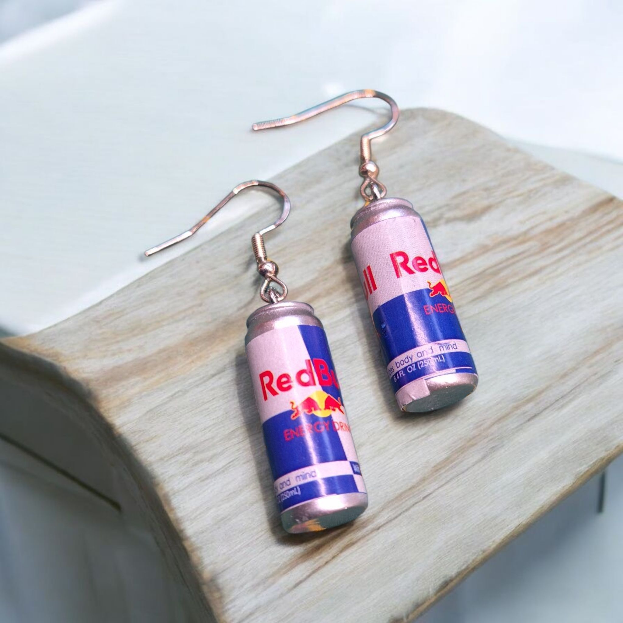 Grappige miniatuur blikjes redbull aan sterling zilveren oorhaakjes lengte : 50mm...
