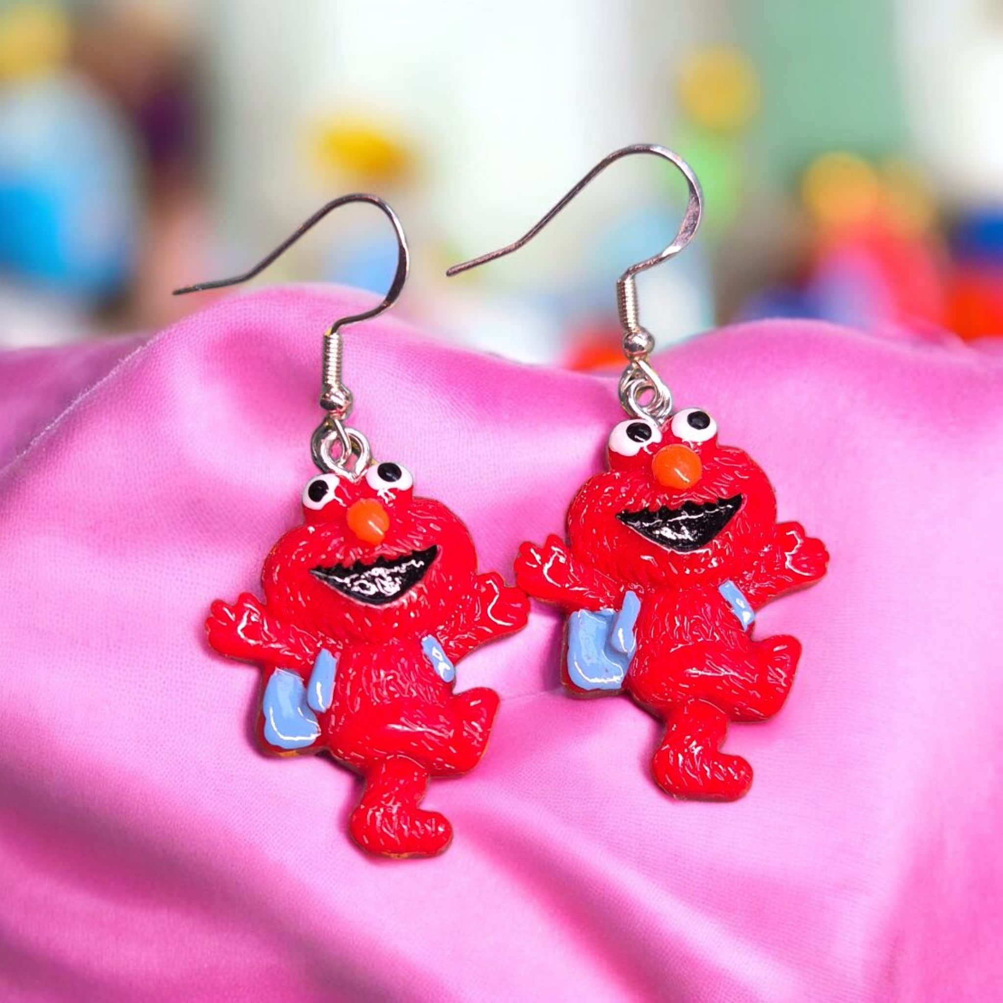 Grappige figuurtje Elmo aan sterling zilveren oorhaakjes lengte: 48mm...