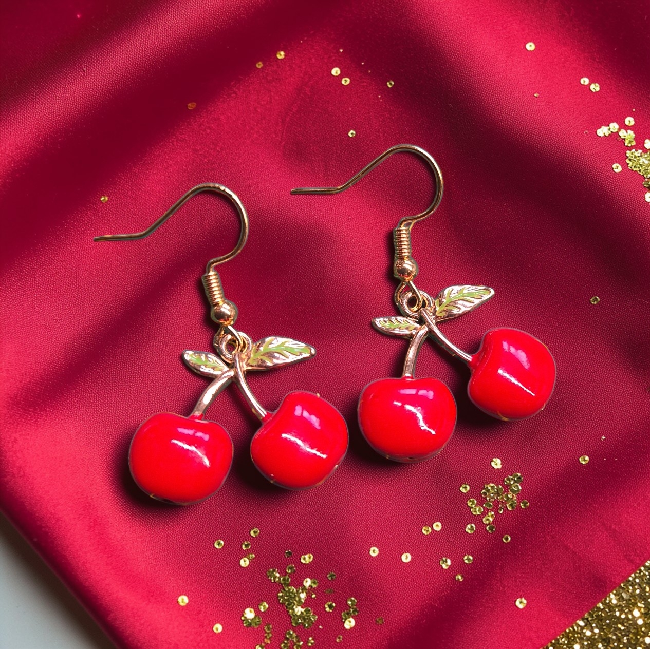 Mooie geëmailleerde kersen aan 18k vergulde oorhaakjes ...