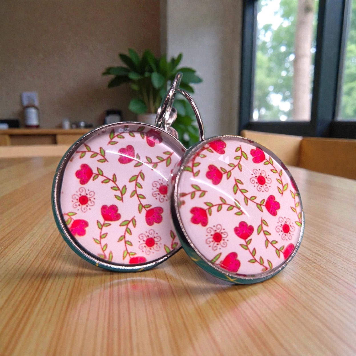 Mooie cabochon met bloemetjes in 20mm setting ...