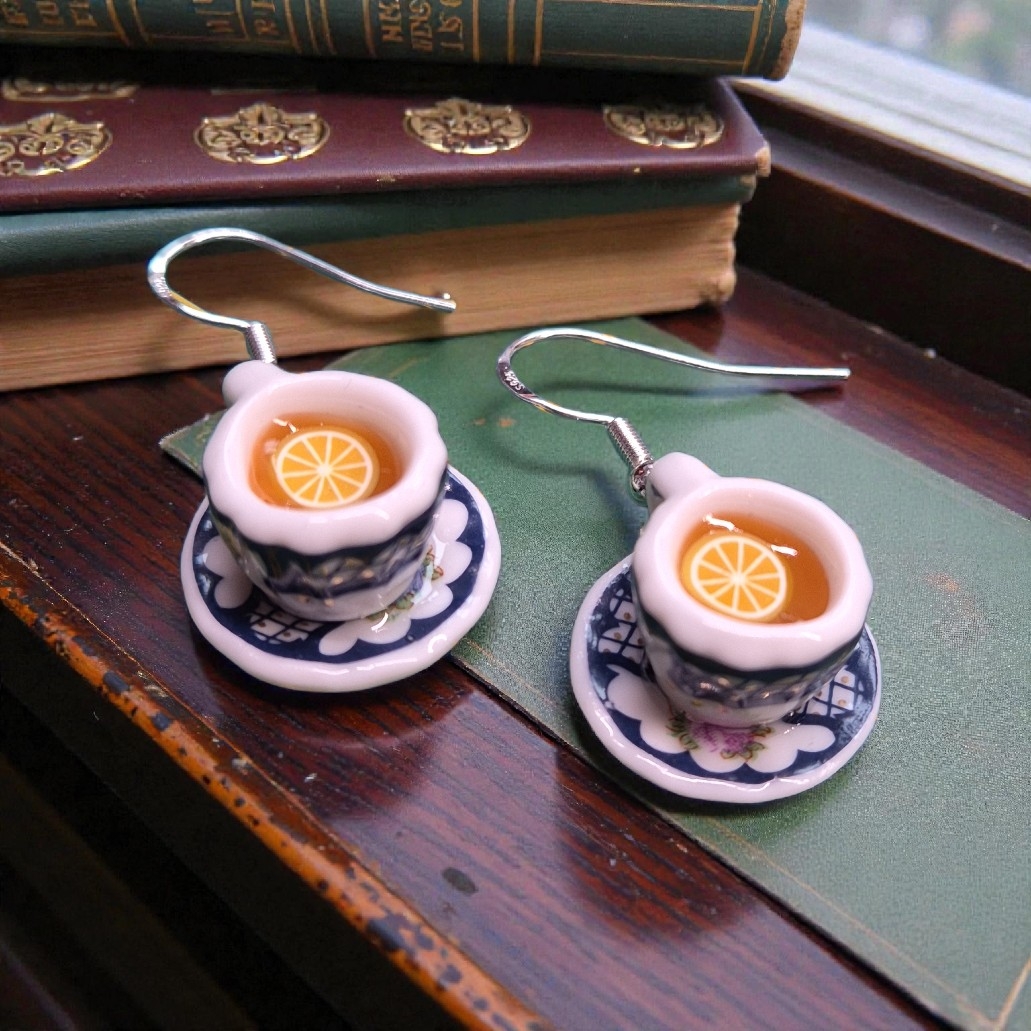 Mooie transparante kopjes met thee citroen aan sterling zilveren oorhaakjes ...
