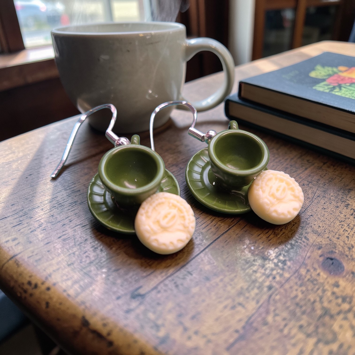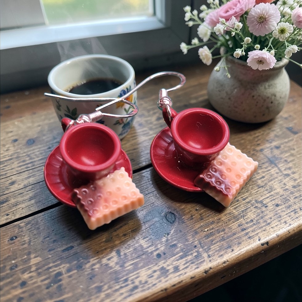 Schattige miniatuur tasjes met koekje aan sterling zilveren oorhaakjes ...