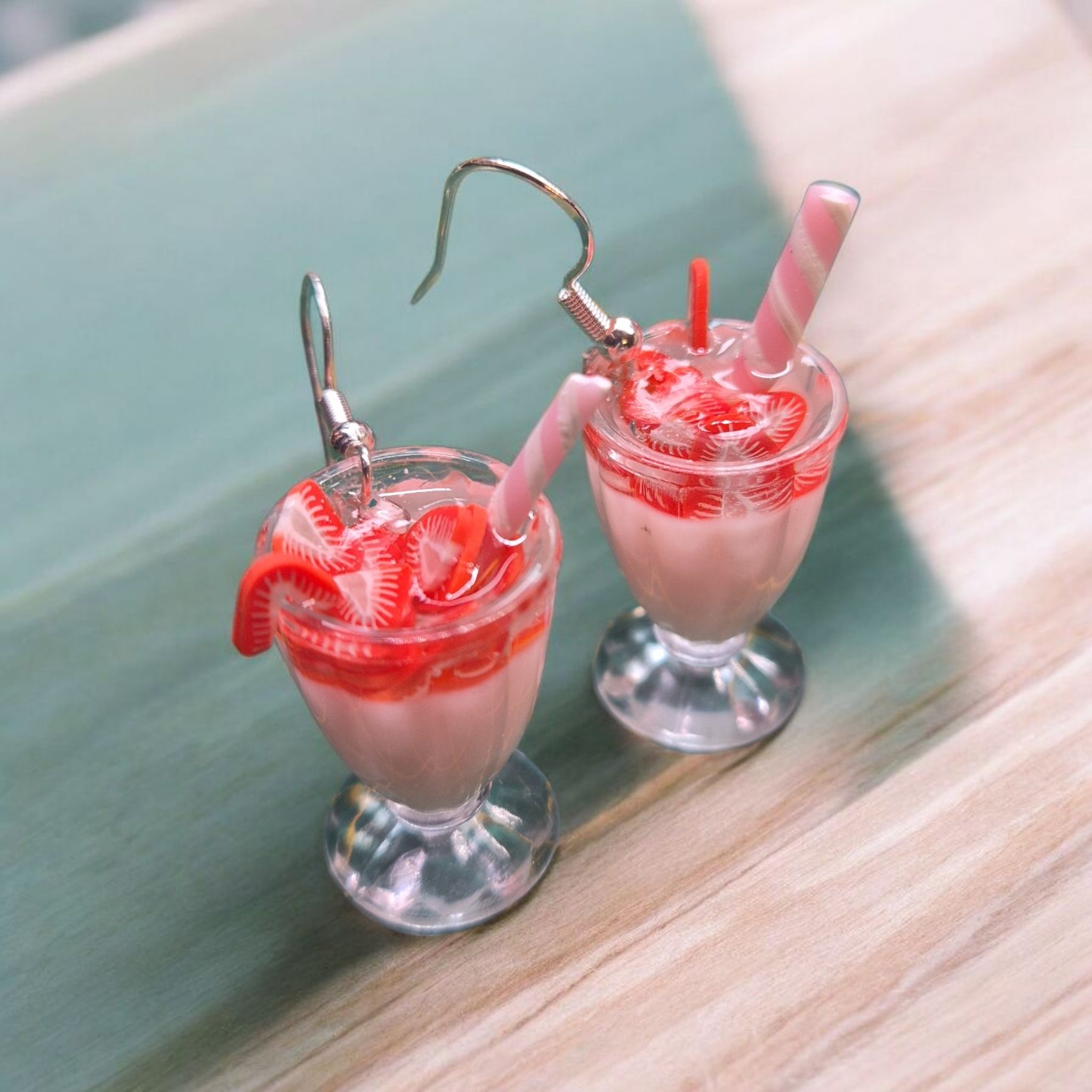 Grappige miniatuur glaasjes met aardbeien aan sterling zilveren oorhaakjes