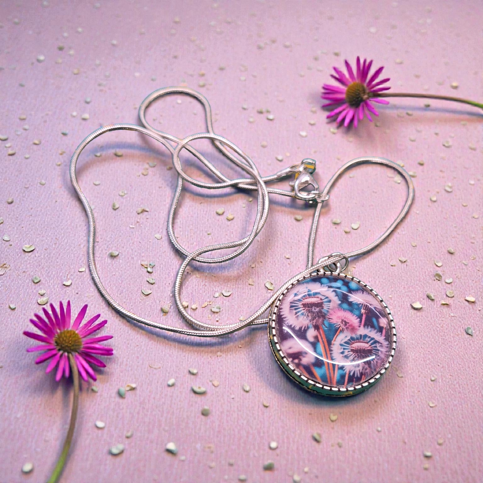 Mooie lange ketting met 25mm hanger met wensbloemen